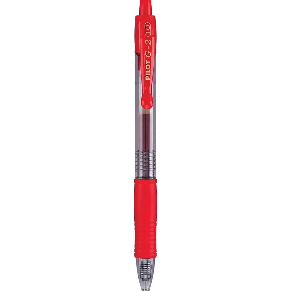 Enjoy free-flowing, comfortable writing by using these retractable gel roller pens. Featuring a 1.0mm bold-point tip, these pens produce bold, smooth lines, while the eye-grabbing red ink keeps notes front and center. These Pilot G2 bold-point premium gel roller pens have a round, see-through barrel design, preventing you from unexpectedly running out of ink.