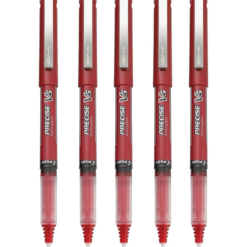 Enjoy smooth skip-free writing by using these premium rolling ball pens. With vivid red ink, these pens are ideal for working on schedules, rough drafts and other frequently revised documents, while the 0.5mm extra-fine-point tips provide precise, thin lines. These Pilot Precise V5 stick pens are airplane-safe, so you can travel without leakage.