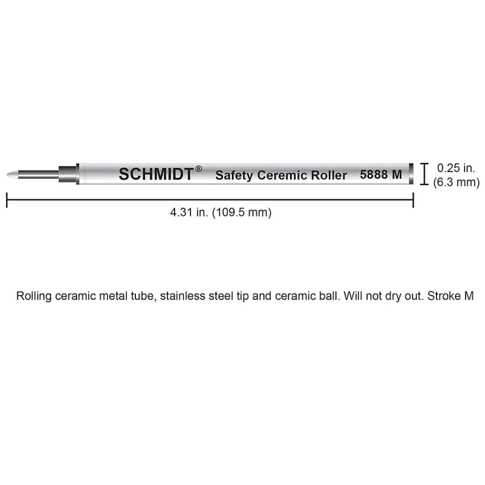 Schmidt 888 Fits many Rollerball pens, Acme®, Aldo Domani®, Aurora®, Bexly®, Colibri®, Conklin ®, Delta ®, Diplomat ®, Faber Castell ®, Hauser®, Montegrappa®, Monteverde ®, Omas ®, Parker ®, Pelikan ®, Retro 51 ®, Schmidt®, Schneider®, Sensa®, Stipula®, Visconti®, Yafa ®