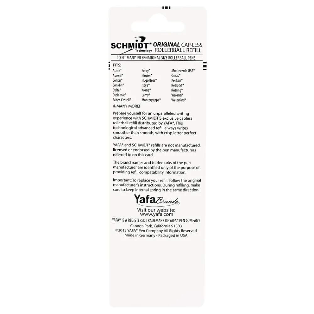 Schmidt 888 Fits many Rollerball pens, Acme®, Aldo Domani®, Aurora®, Bexly®, Colibri®, Conklin ®, Delta ®, Diplomat ®, Faber Castell ®, Hauser®, Montegrappa®, Monteverde ®, Omas ®, Parker ®, Pelikan ®, Retro 51 ®, Schmidt®, Schneider®, Sensa®, Stipula®, Visconti®, Yafa ®