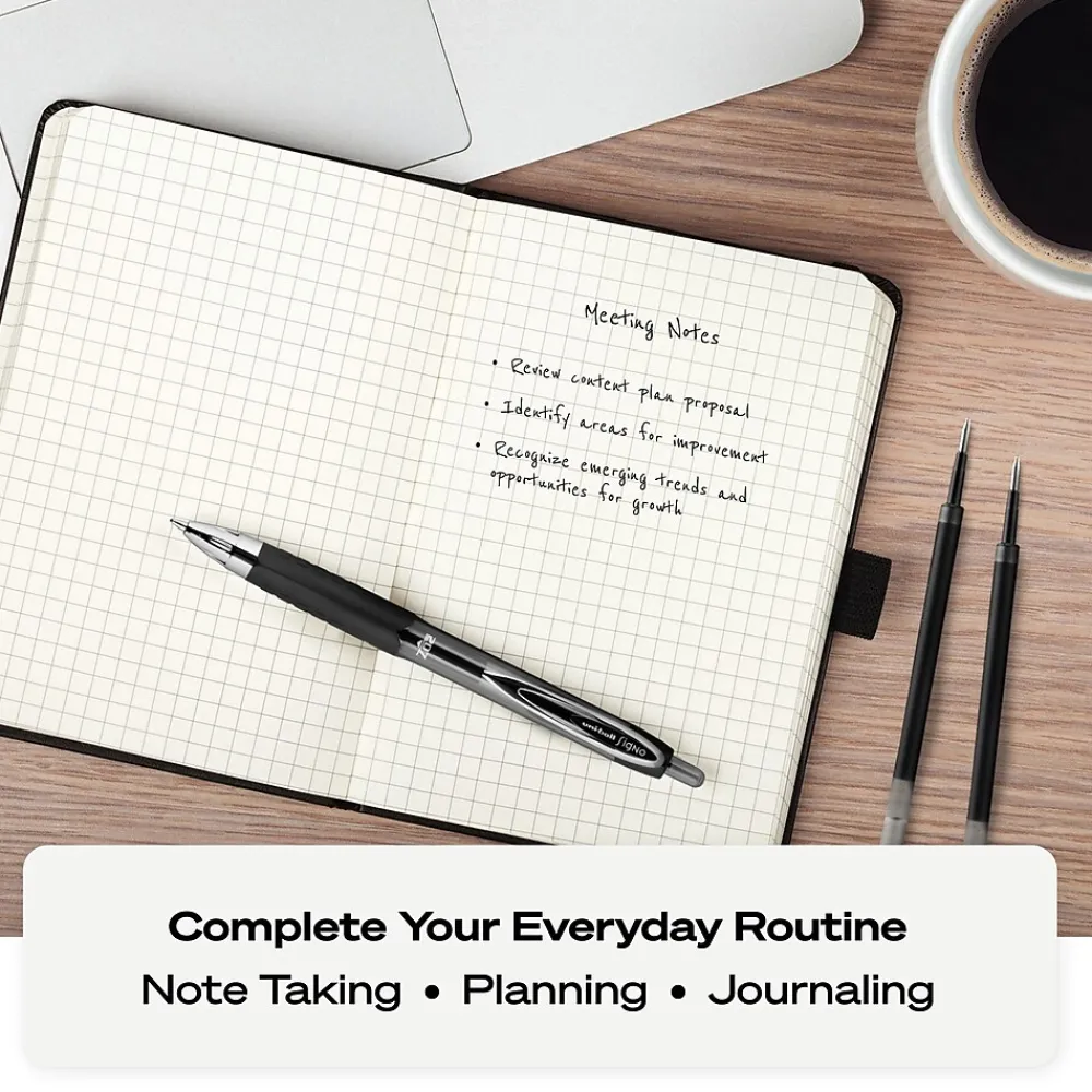 Stock your office, home or classroom with 207 Retractable Gel Pens from uniball featuring a 0.7mm medium point with a stainless steel tip that resists bending and breaking. Even-flowing, pigment-based gel ink delivers a smooth writing experience for intense, vibrant lines, ensuring that every mark is brilliantly communicated. Use these retractable gel pens for everyday writing tasks, check signing and all of your important signatures, trusting its quick-drying uni Super Ink. Innovative uni Super Ink technology effectively entraps the gel ink into the paper, producing fraud, fade and water-resistant documents that resist check washing or bleaching. The 0.7mm medium point strikes the perfect balance between bold and detailed lines. A textured grip offers greater comfort and control as you continue writing, while a translucent ink window indicates the level of gel ink remaining, so you don’t run out unexpectedly. The sleek design of the 207 with modern metal accents gives the retractable gel pen a stylish touch.