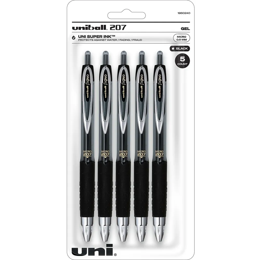 Prevent marks from smudging and smearing with this uni-ball retractable black gel pen. The 0.5mm tip is perfect for creating sharp marks for easy reading, while the retractable design prevents stray marks when not in use. This uni-ball Signo 207 retractable black gel pen has a metal clip for transporting in a pocket or notebook.