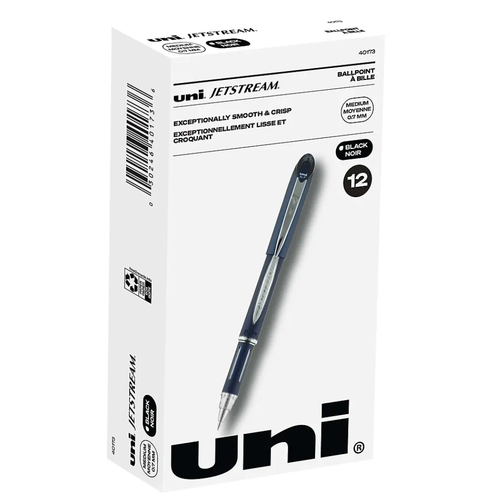 Write with greater speed and efficiency using JETSTREAM Ballpoint Stick Pens from uniball featuring a 0.7mm fine point. The pens deliver an incredibly fast, clean writing experience that helps you jot down your thoughts and ideas quickly. Combining the silky smoothness and vivid vibrancy of a gel pen with the fast-drying efficiency of a ballpoint, these JETSTREAM ballpoint pens offer the best of both worlds. Quick-drying ink resists smudges and smears, making this pen suitable for left-handed writers. An embossed grip offers better control when writing. Contemporary stainless steel accents give these Incredible ink pens a stylish appeal. JETSTREAM stick pens feature pigment-based uni Super Ink technology that settles deep into the paper, offering three-way protection against fraud, fading and water. The fine point delivers precise lines, suitable for all of your writing and creative projects from taking notes to drawing and illustrating.