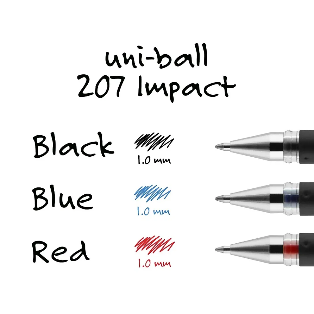 Make an impact with 207 IMPACT Gel Stick Pens from uniball featuring a 1.0mm bold point with a stainless steel tip that resists bending and breaking. Even-flowing, pigment-based gel ink renders an outstanding ink laydown for a smooth writing experience and strikingly bold lines. Use these capped stick gel pens for everyday writing tasks, check signing and all of your important signatures, trusting its quick-drying uni Super Ink. Excusive uni Super Ink technology entrenches the gel ink deep into the paper, preventing document alteration, water damage or fading. The 1.0mm point delivers bold writing with a silky finish. A soft rubber grip helps you continue writing without fatigue while maintaining precision and detail throughout your tasks. Lend a vivid touch to your writing with these sophisticated gel stick pens that glide smoothly for distinct and neat writing.
