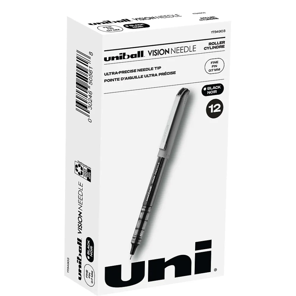 Stock your office, home or classroom with Vision Needle Stick Rollerball Pens from uniball featuring a strong, long lasting 0.7mm fine point. These needle point pens are designed with a bend resistant tip for better accuracy. Even-flowing, pigment-based roller ink delivers a smooth writing experience for reliably smooth, vivid lines and a rich color for improved clarity and readability. Use these fine point rollerball pens to create perfect letters, numbers and graphics. Innovative uni Super Ink technology effectively entraps the liquid ink into the paper, producing fraud, fade and water-resistant documents that resist check washing or bleaching. The 0.7mm fine needle point allows you to create ultra-precise, straight edge lines with ease. The exclusive Uni-Flow Ink System ensures a consistent, delightfully fluid writing experience, and a translucent window ensures that you don’t run out of ink unexpectedly. Enjoy beautiful clean lines and give all of your ideas a burst of brilliant color with this classic style fine point rollerball pen.