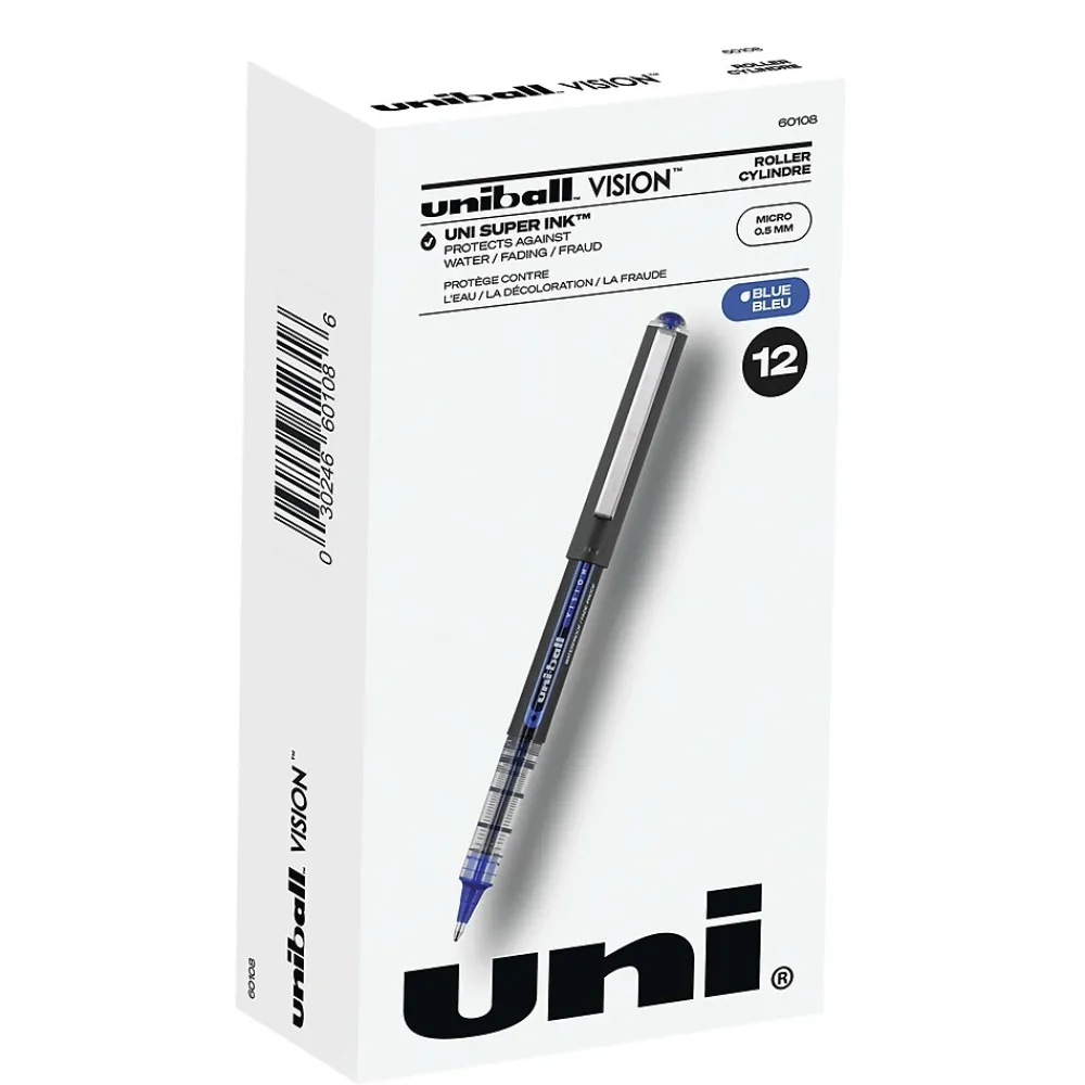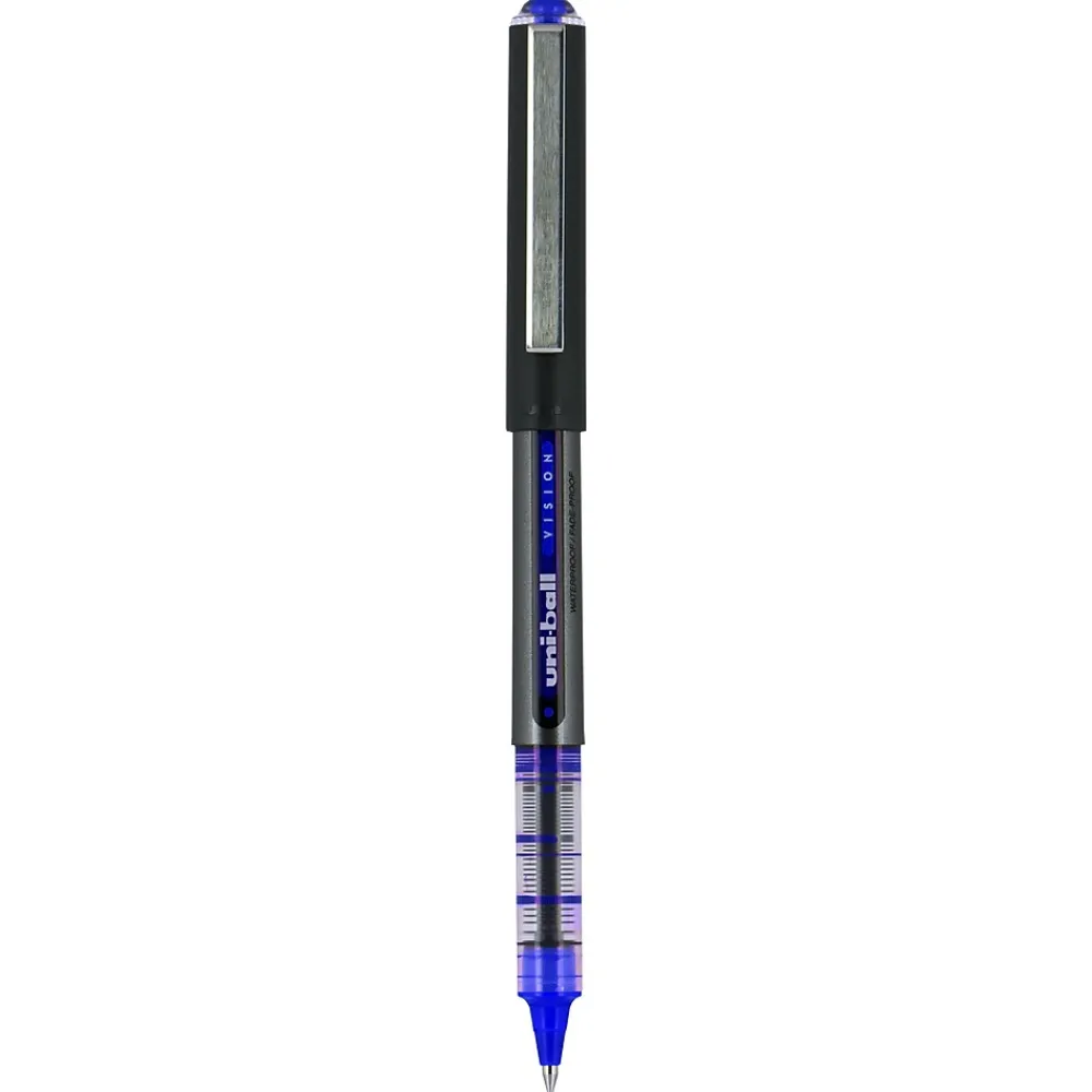 Make your everyday writing easy with the effortless and dependable performance of Vision Rollerball Pens from uniball available in multiple tip sizes. Capped roller pens deliver an even liquid ink lay-down for reliably smooth, vivid lines and a rich color for improved clarity and readability. Great for all writing tasks from taking notes to record keeping with archival quality, acid free roller ink. Innovative uni Super Ink technology forms an indestructible bond with the paper to minimize the risk of check washing or document fraud, while also protecting from water and fading. The exclusive Uni-Flow Ink System ensures a consistent, delightfully fluid writing experience, and a translucent window ensures that you don’t run out of ink unexpectedly. Enjoy beautiful clean lines and give all of your ideas a burst of brilliant color with this classic style rollerball pen.