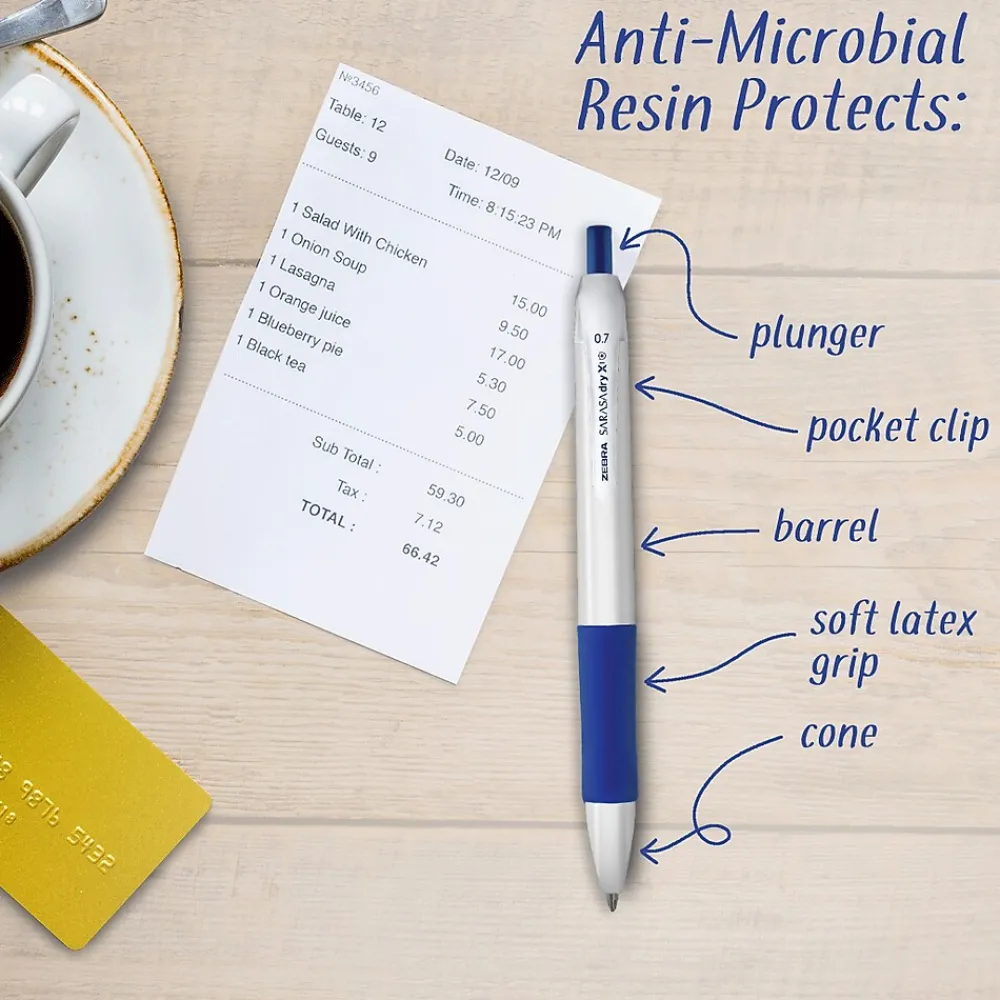Pens|Zebra Sarasa Dry X1+ Retractable Gel Pen, Medium Point, 0.7mm, Blue Ink, Dozen (41520)