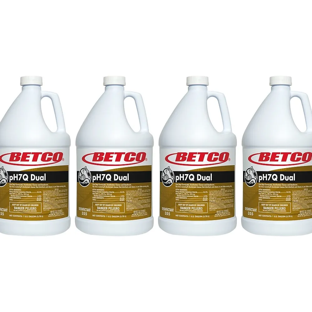 This Betco pH7Q Dual concentrated multipurpose germicidal detergent and deodorant disinfects, cleans, and deodorizes in one labor-saving step. Recommended for use in hospitals, nursing homes, schools/colleges, commercial and industrial institutions. Neutral pH formula is perfect for damp-mopping highly polished floors and will never dull, haze, or leave a film.