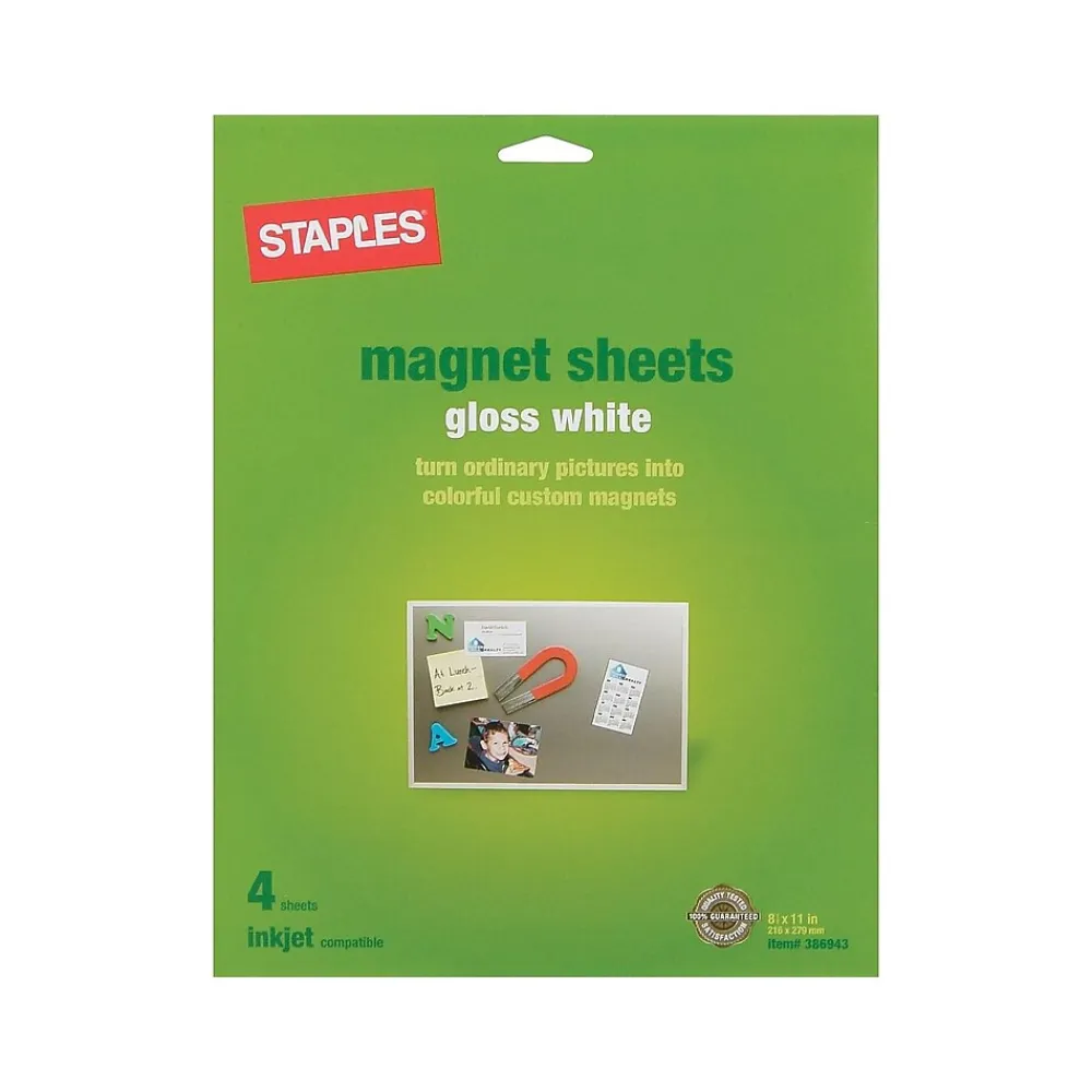 Print magnets for your business with these inkjet magnetic sheets. The letter-size format fits in standard paper trays for easy setup, and the glossy finish adds a sleek, professional appearance to your designs. Each sheet is compatible with most inkjet printers for convenient compatibility. These Staples magnetic sheets are ideal for printing photos, calendars, and a wide range of other designs.