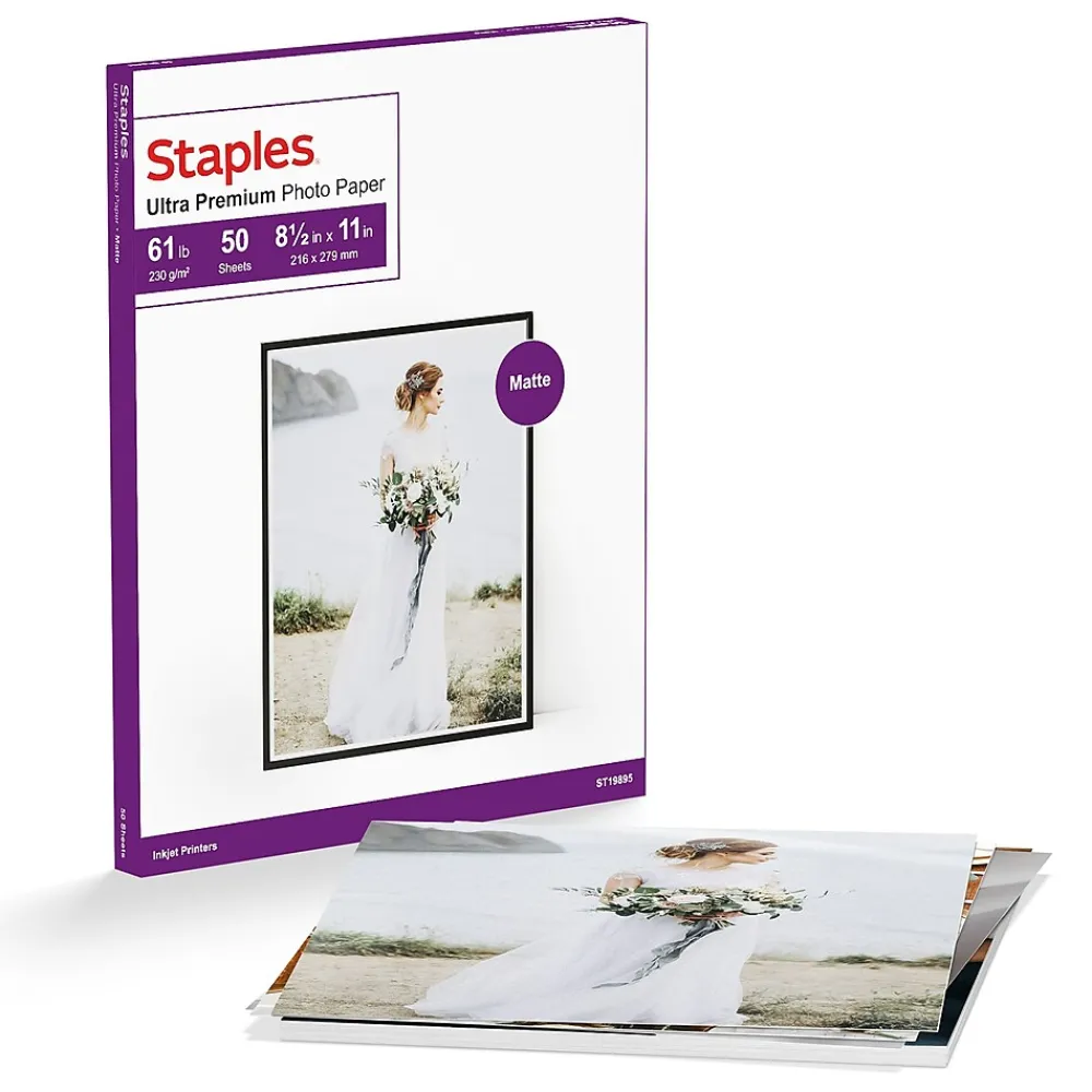 Get high-quality photos straight from the printer with this ultra premium photo paper. The double-sided matte finish ensures images print with rich, bright smudge-free detail, while the tear-resistant and curl-resistant features help pictures remain intact and lie perfectly flat as they’re displayed. This Staples ultra premium photo paperwill ensure that photos and printouts remain bright and clear and don’t yellow or crumble over time.