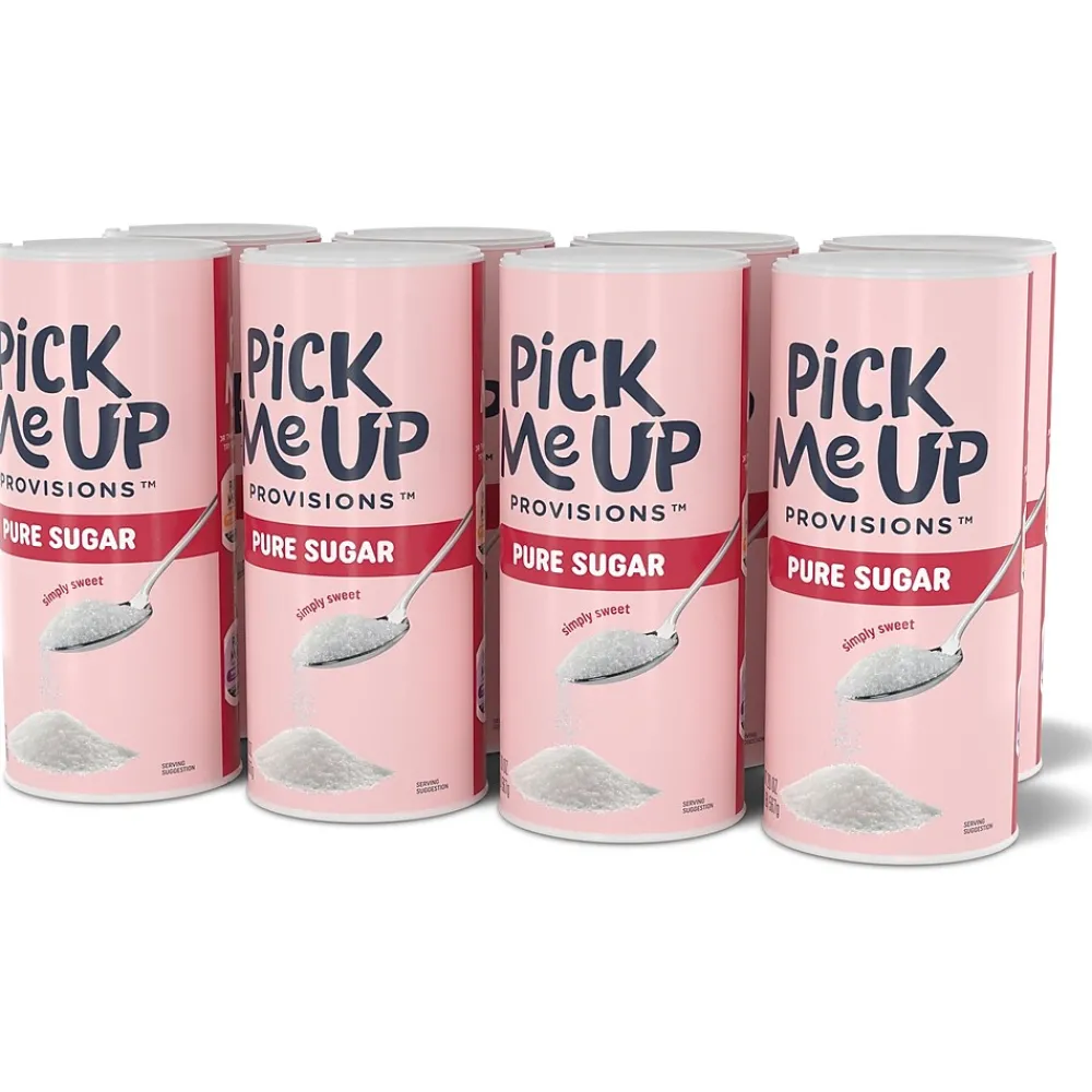 Keep your breakroom buzzing with endless sweetness by stocking it with this 8-pack of 22-ounce Pick Me Up Provisions sugar. You’ll have plenty of sugar to restock the coffee bar, breakroom or waiting room. The easy-to-use flip-top pour spout makes sure you’ll be able to keep providing your office space with 100% pure cane sugar without worry. The canister also keeps out moisture, dust, and other debris so that the sugar is always fresh and ready to be enjoyed. Enhance the flavor of your coffees, teas, and other drinks with this plentiful 8-pack of delicious sweetener.