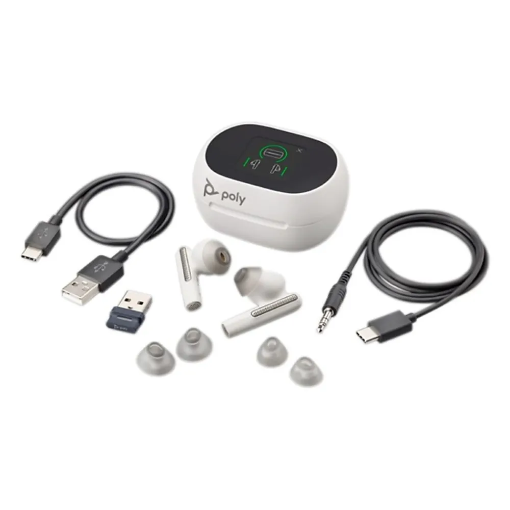 - View your status, charge your earbuds, and control your meetings, calls, and music with the touchscreen charge case