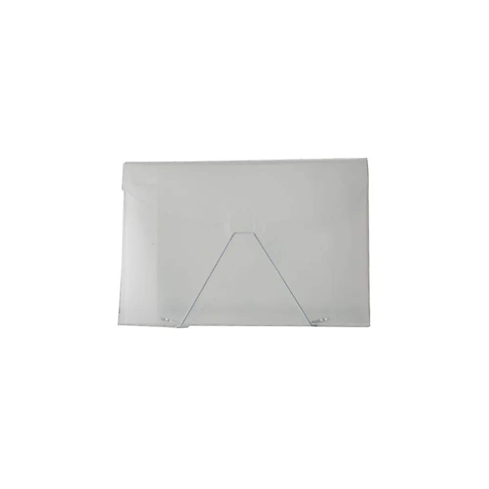 JAM PaperĀ® Clear Frost Medium Plastic Portfolio with Hook Closure is a great choice for keeping, protecting, and carrying papers and note cards around your office, into the board room, or into the class room! This portfolio measures 6.5 x 9.5 x 0.25 inches in size and is made out of smooth durable poly plastic. Sold individually, this portfolio is black and has a rounded flap opening with a round tab at the end. A white strand of elastic string that is connected to the back on the bottom stretches upward from the bottom and loops around this tab to keep the portfolio closed. Use this versatile portfolio for your reports, projects, notes, and more!