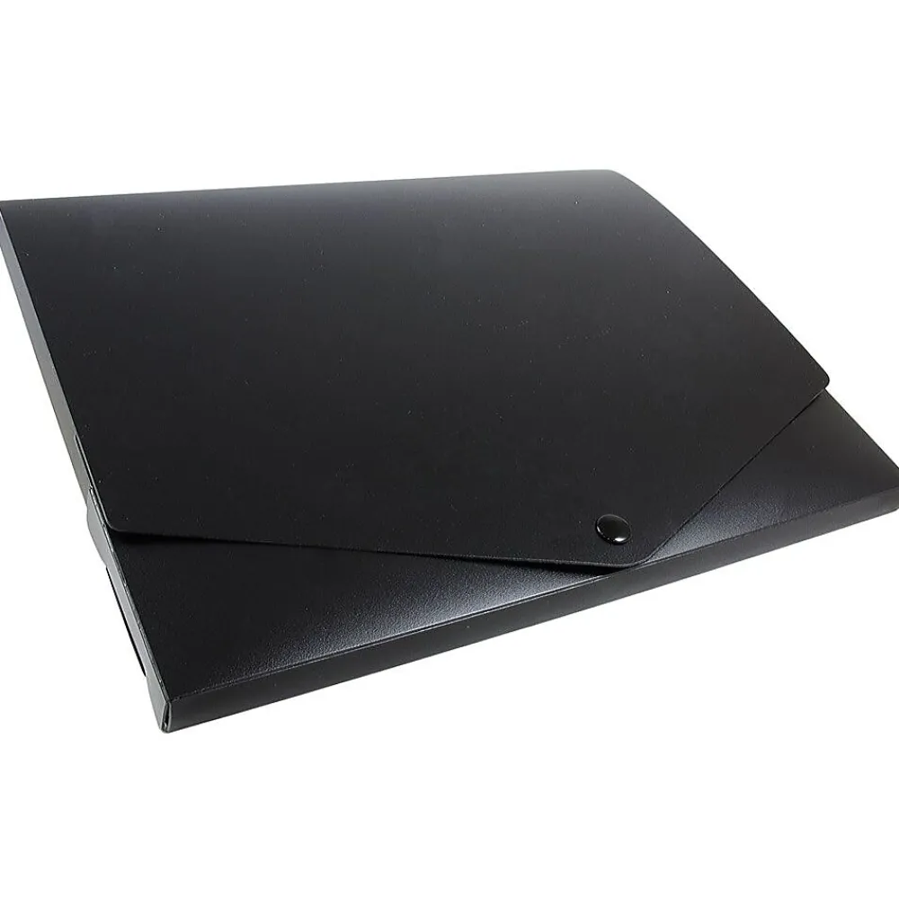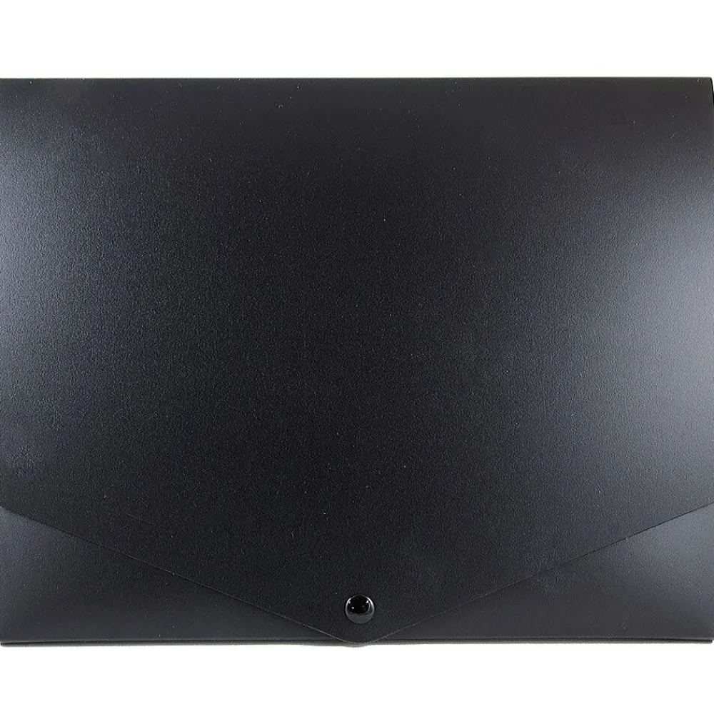 JAM PaperĀ® Plastic portfolio in black color measures 10″ x 12 1/2″ x 3/4″ and is made of recycled pressboard for durability. Portfolio in medium size comes with a snap button closure.