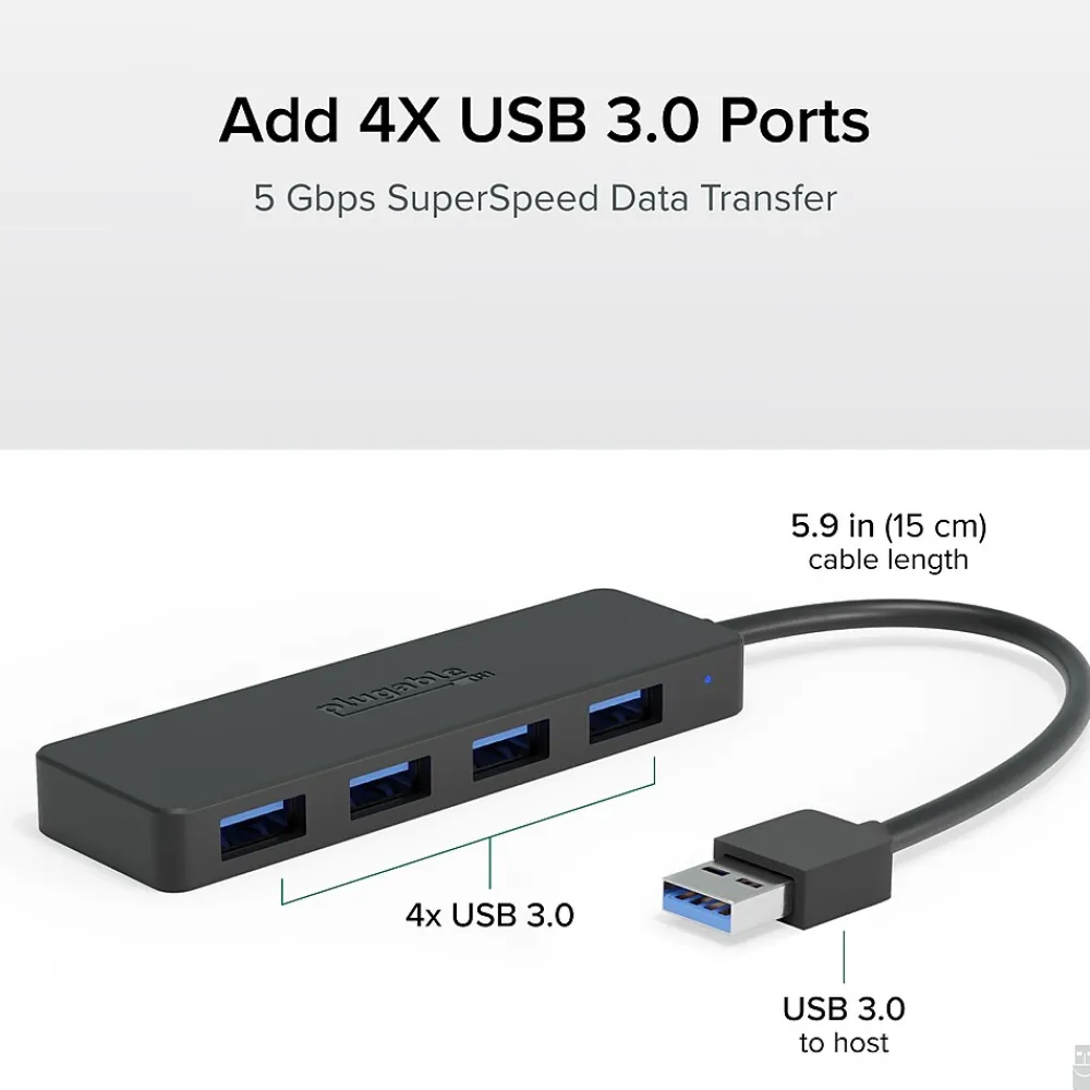 Plugable 4 Port USB Hub 3.0, USB Splitter for Laptop, Compatible with Windows, Surface Pro, PC, Chromebook, Linux, Android, Charging Not Supported