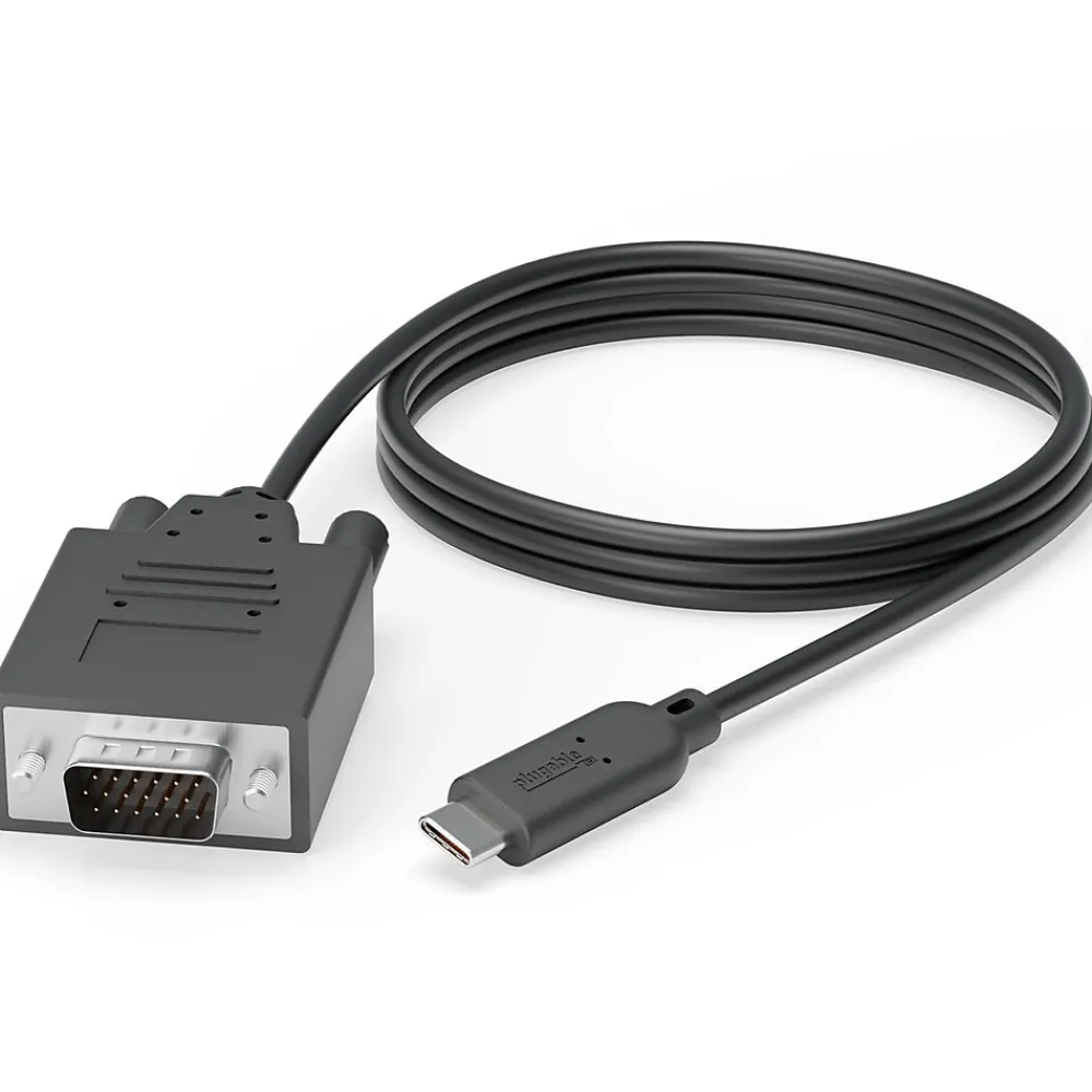 The Plugable USBC-VGA-CABLE 6′ video cable in black, is to connect an older VGA equipped monitor. It is compatible with iMac Pro, MacBook 2017, Pro, Pro 13″, Pro 15″, Retina 12″ 2015, Retina 12″ 2016, Dell XPS 13, XPS 15, Chromebook Pixel 2015, ThinkPad P50 and ThinkPad P70. It has 15-pin HD-15 male VGA connector on the first end and USB 3.1 type C male connector on the second end.