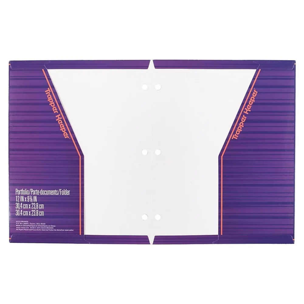Get organized for meetings or classes with this portfolio folder. The two internal pockets provide ample storage for papers and small accessories, while the bright design is great for color-coding. This Mead Trapper Keeper two-pocket portfolio folder has three hole punches for easy insertion into most standard binders, and the header lets you write in a name and subject for quick identification.