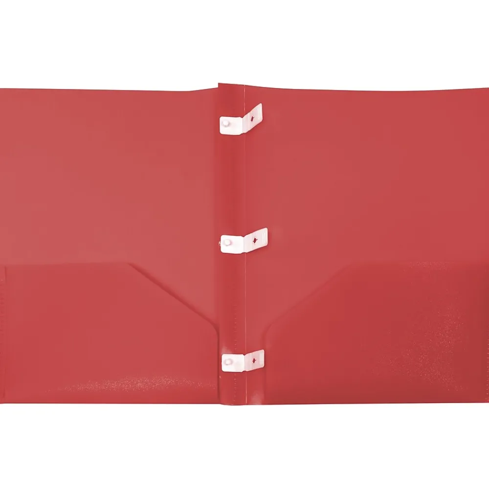 Storex folders and report covers are made from a thick poly material which will not tear or, crack, or fray. The covers feature plastic prongs which are safer to use than metal tangs.