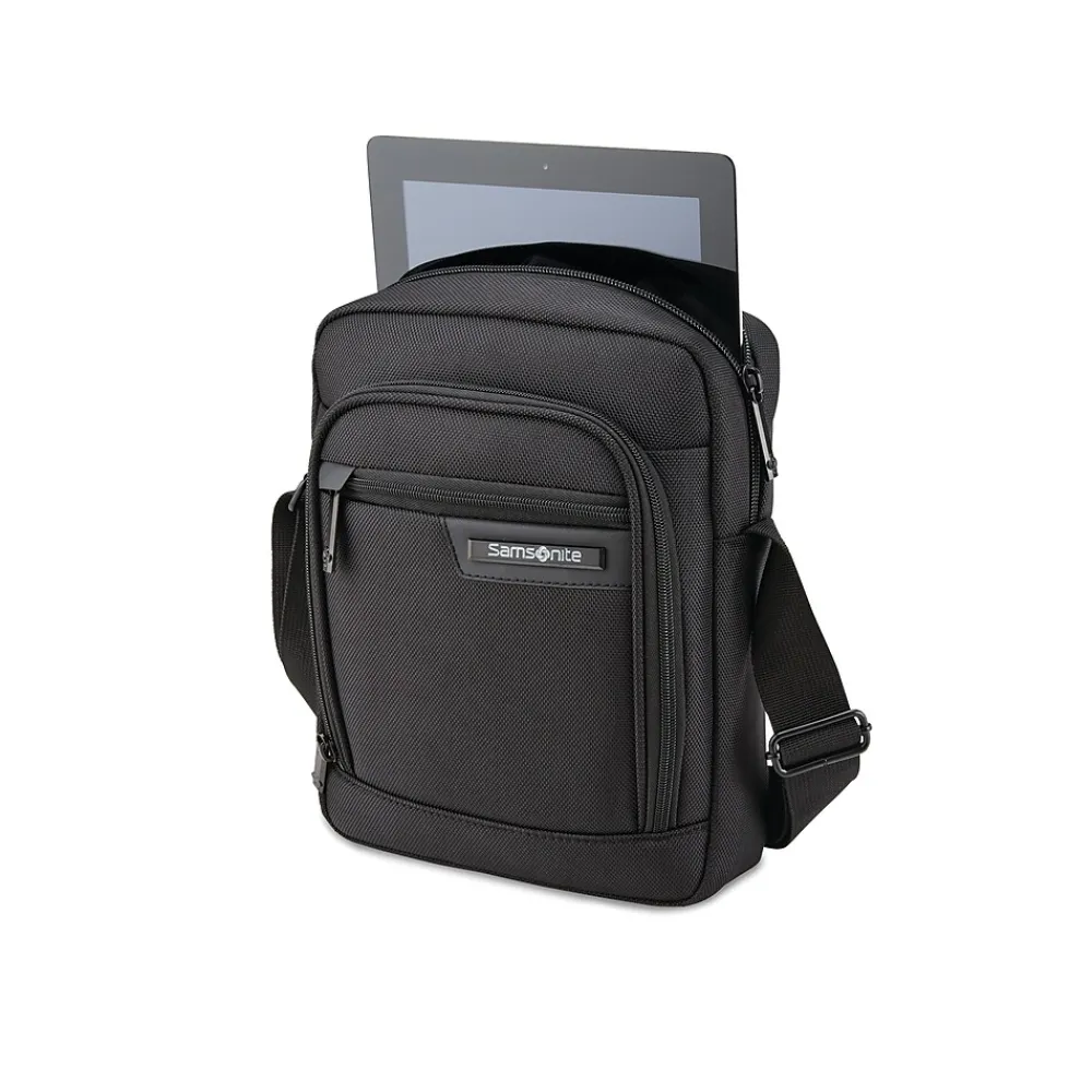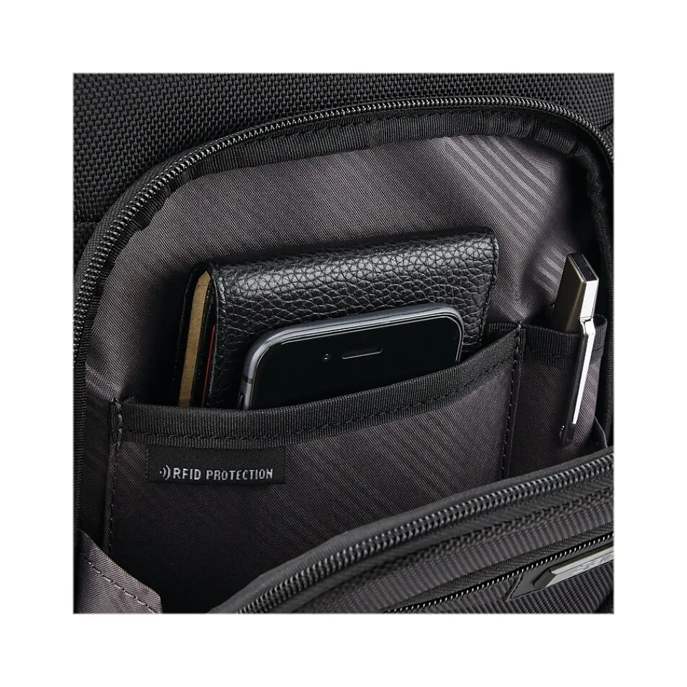 The business cross-body messenger bag by Samsonite is sized to fit all the essential items. Convenient, hands-free design in a modern and practical silhouette. The added RFID protective lining makes it a great travel or everyday bag.