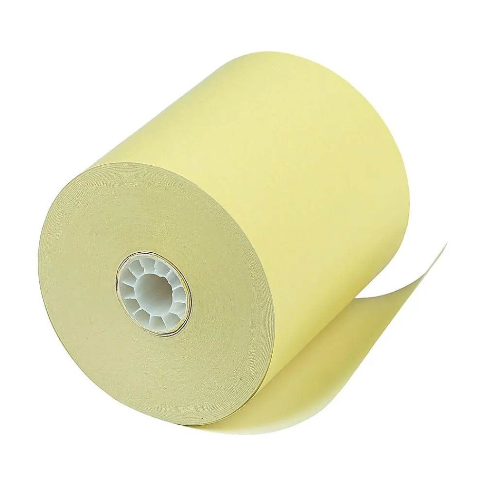 Keep your receipts visible and easy to find with these rolls of canary POS paper. This carton features 50 rolls of paper, each with a length of 230 feet, making it easy to keep your cash registers stocked and prevent running out. These PM Company canary POS paper rolls are designed for easy installation and removal.