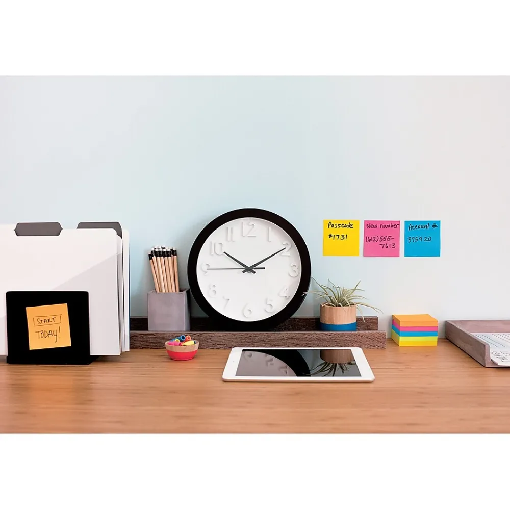 Use for notes or reminders on doors, windows or walls. Unique adhesive reliably sticks and re-sticks so your message can stay front and center. Move your notes with you throughout the day. Energy Boost and Playful Primaries collection colors bring a rainbow of bright colors to use for color coding, or organizing a large project. Post-it® Super Sticky Notes are recyclable and the paper in Post-it® Super Sticky Notes is sourced from certified, renewable and responsibly managed forests. 15 Pads/Pack, 45 Sheets/Pad.