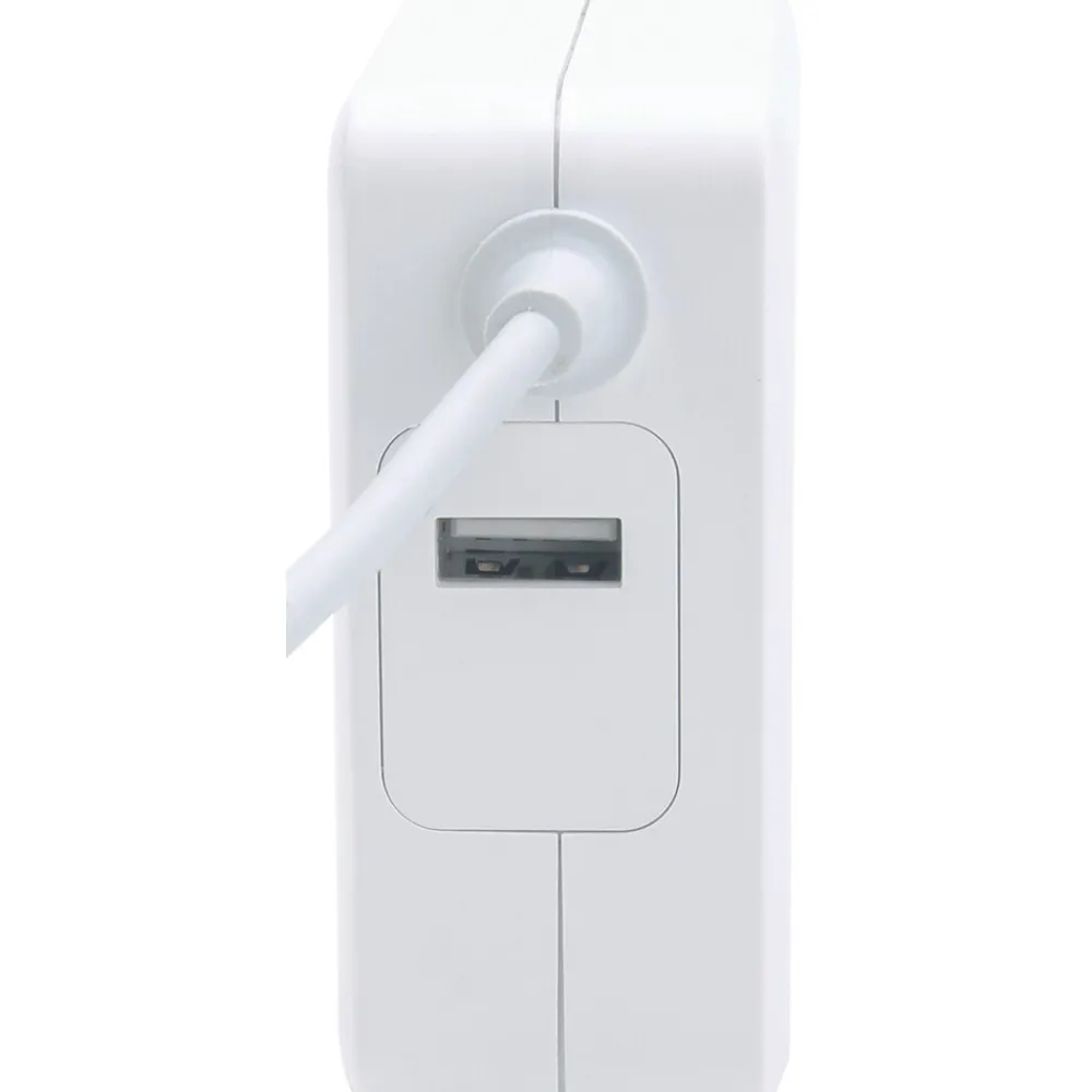 Enjoy complete charging power with this Manhattan 60-Watt Power Delivery Wall Charger with Built-in USB-C Cable in white. The charger’s attached USB-C cable uses Power Delivery (PD) technology to provide plenty of power to laptops and mobile phones, and the additional USB-A port can quickly charge any handheld device or tablet. It’s the ideal companion for travelers with its stylish, compact and ultra-modern design. It also intelligently safeguards itself and your devices with its short circuit, overvoltage, overcurrent and overtemperature protection functions.