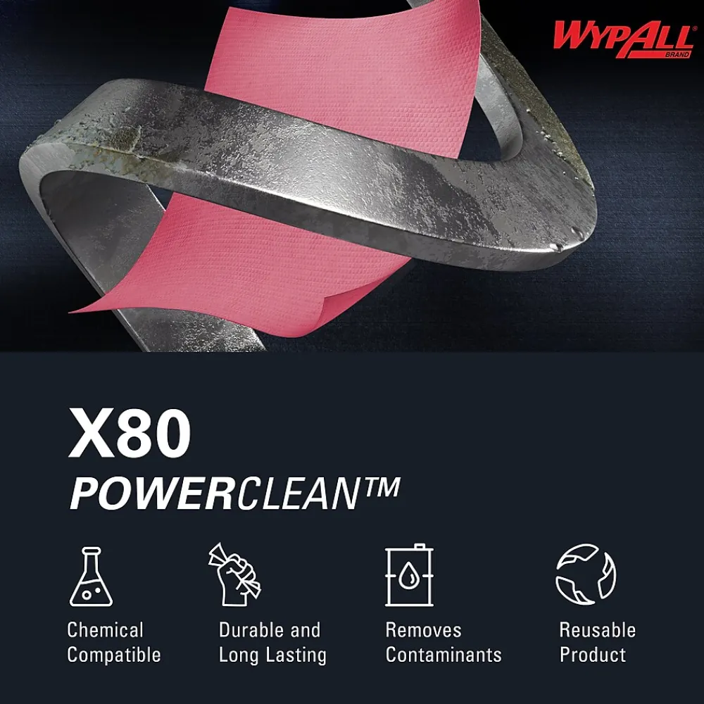- 475 Sheets/Roll; 1 Roll of WypAll® PowerClean™ X80 Heavy Duty Cloths/Case; 475 Sheets/Case; Red; Jumbo Roll; Extended Use Towels