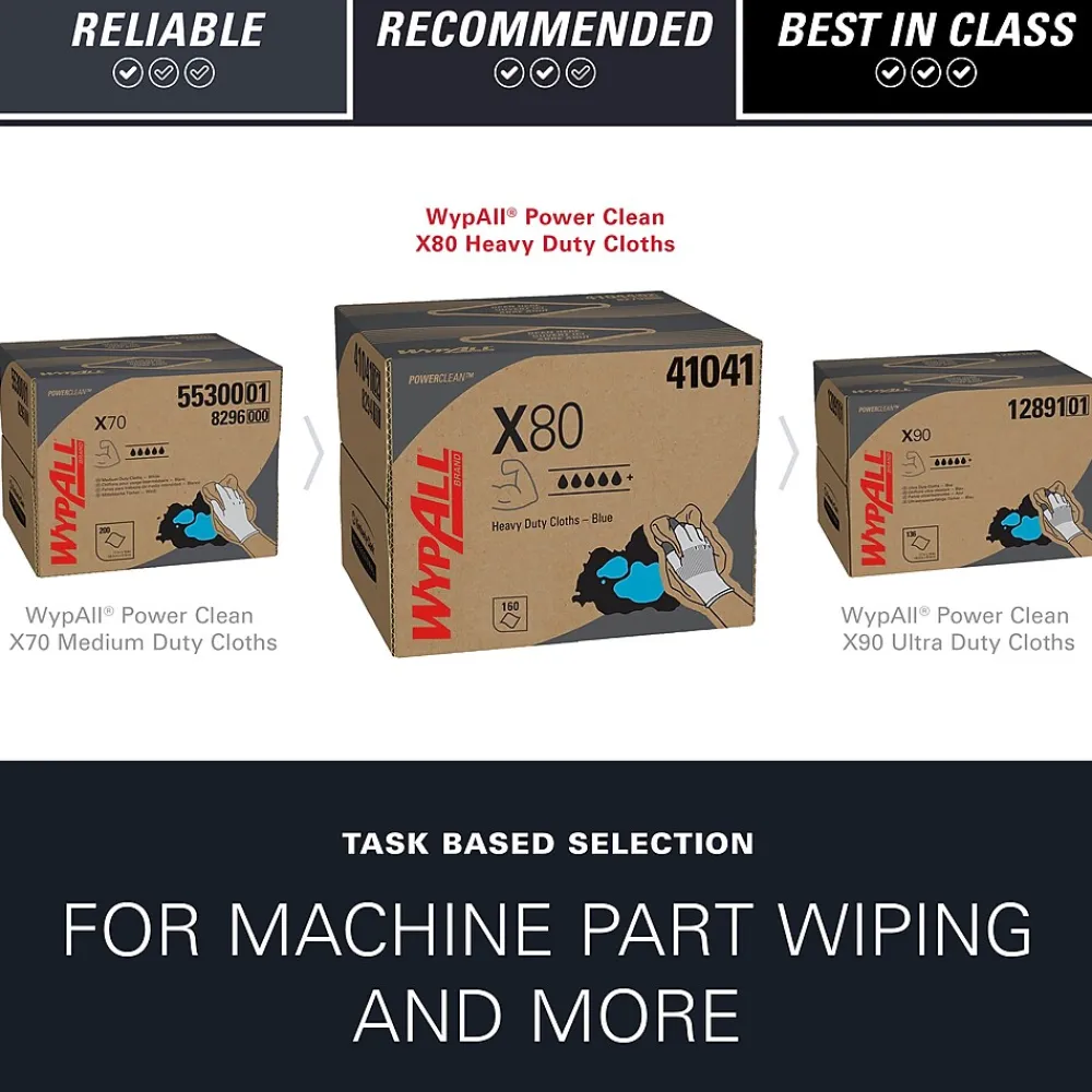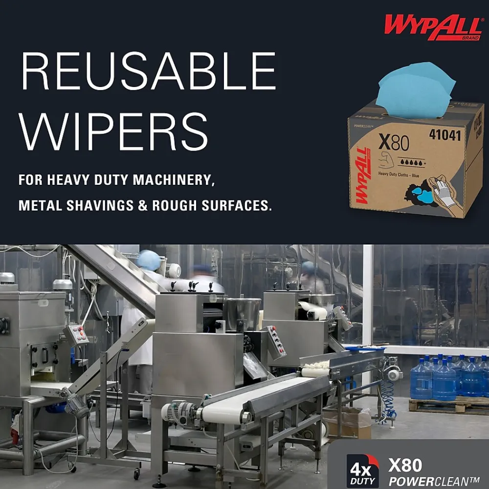 - 160 Sheets/Pack; 1 Pack of WypAll® PowerClean™ X80 Heavy Duty Cloths/Case; 160 Sheets/Case; Blue; Brag Box; Extended Use Towels