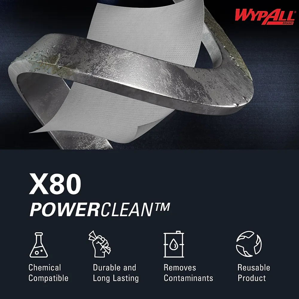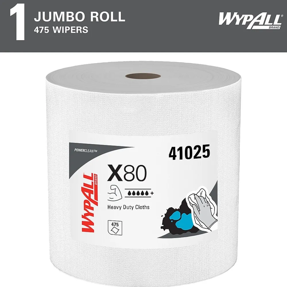 - 475 Sheets/Roll; 1 Roll of WypAll® PowerClean™ X80 Heavy Duty Cloths/Case; 475 Sheets/Case; White; Jumbo Roll; Extended Use Towels