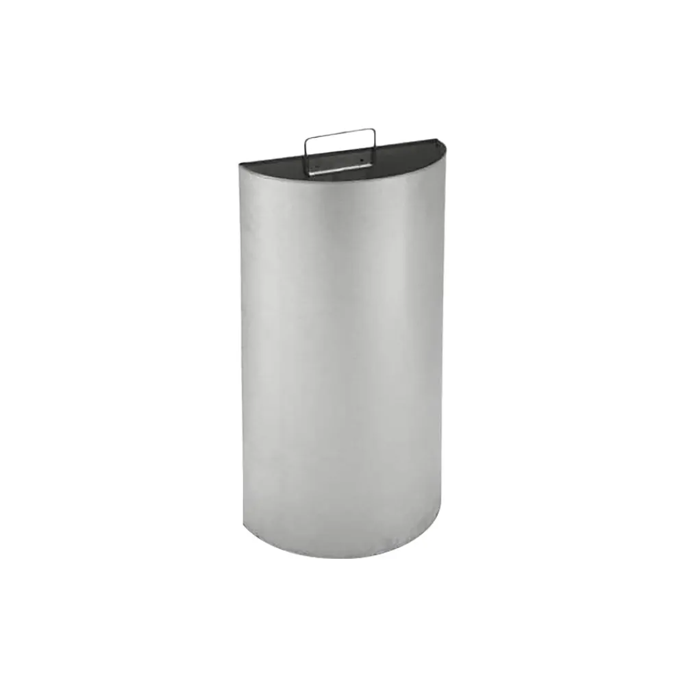 Save space and elevate your environment with this half-moon stainless steel waste receptacle. It fits well next to desks and elevators or within lobbies. The bottom-mounted rubber base ring keeps this unit in place, preventing tipping and protecting floors.