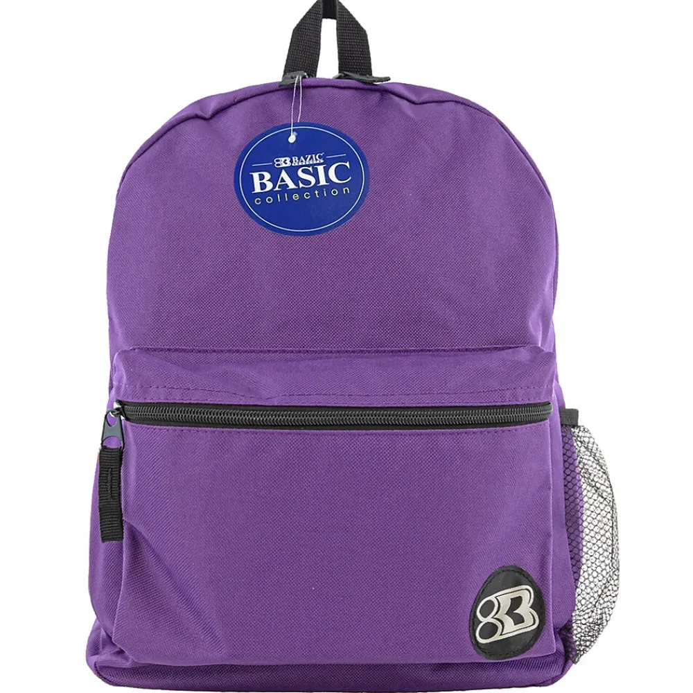 This 16″ school bag features 2 compartments: one large compartment mainly for larger items such as text book, binders, and laptops, the other compartment is a smaller compartment located in front, mainly for smaller items, such as cell phones, keys, and hand sanitizer. Both compartments have zipper closure. There are 2 adjustable shoulder straps nicely padded for comfort when carrying the backpack. There are 2 zipper pulls for the large compartment, and 1 zipper pull for the smaller compartment. There is a nylon handle on top of the backpack, convenient for hanging the backpack on hook outside of classrooms, or any hanger. Bazic Products’ logo is stitched in the front, on the bottom right of the small compartment for recognition. Sold as a pack of 2 backpacks.