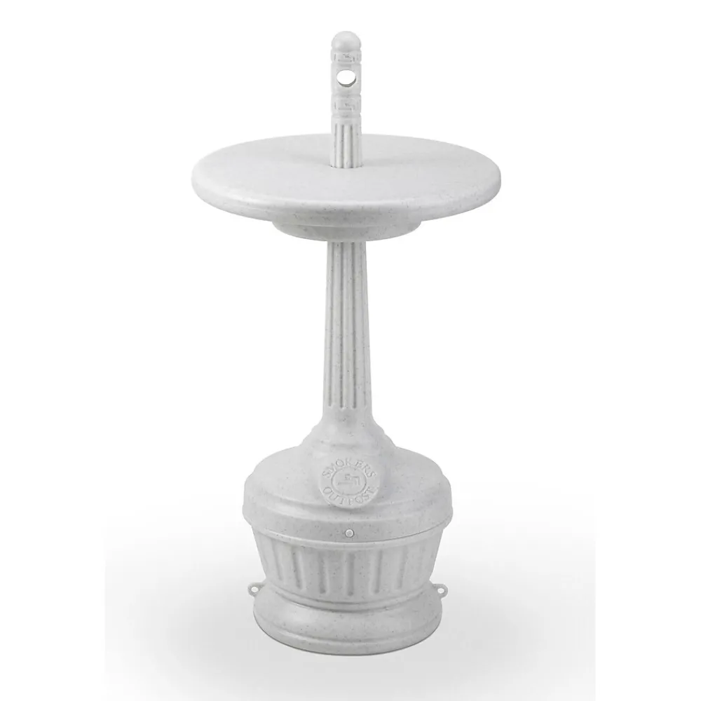Keep cigarette litter hidden from public view while maintaining a clean and neat appearing entrance or smoking break area. The compact and stream-lined white Smokers’ Outpost® Patio with Table ash receptacle offers a removable tabletop that makes it ideal for outdoor patios, porches, pool areas or decks. With a keyhole opening that allows cigarettes to easily enter but keeps unwanted litter out, the Patio with Table ash urn solves any ash disposal need. Its screw closure, tie-down rings and optional bolting hardware helps make security simple. The patented oxygen-restricting design extinguishes cigarettes quickly; no sand or water required. Ash urn includes 5-quart galvanized pail to easily empty cigarette litter.