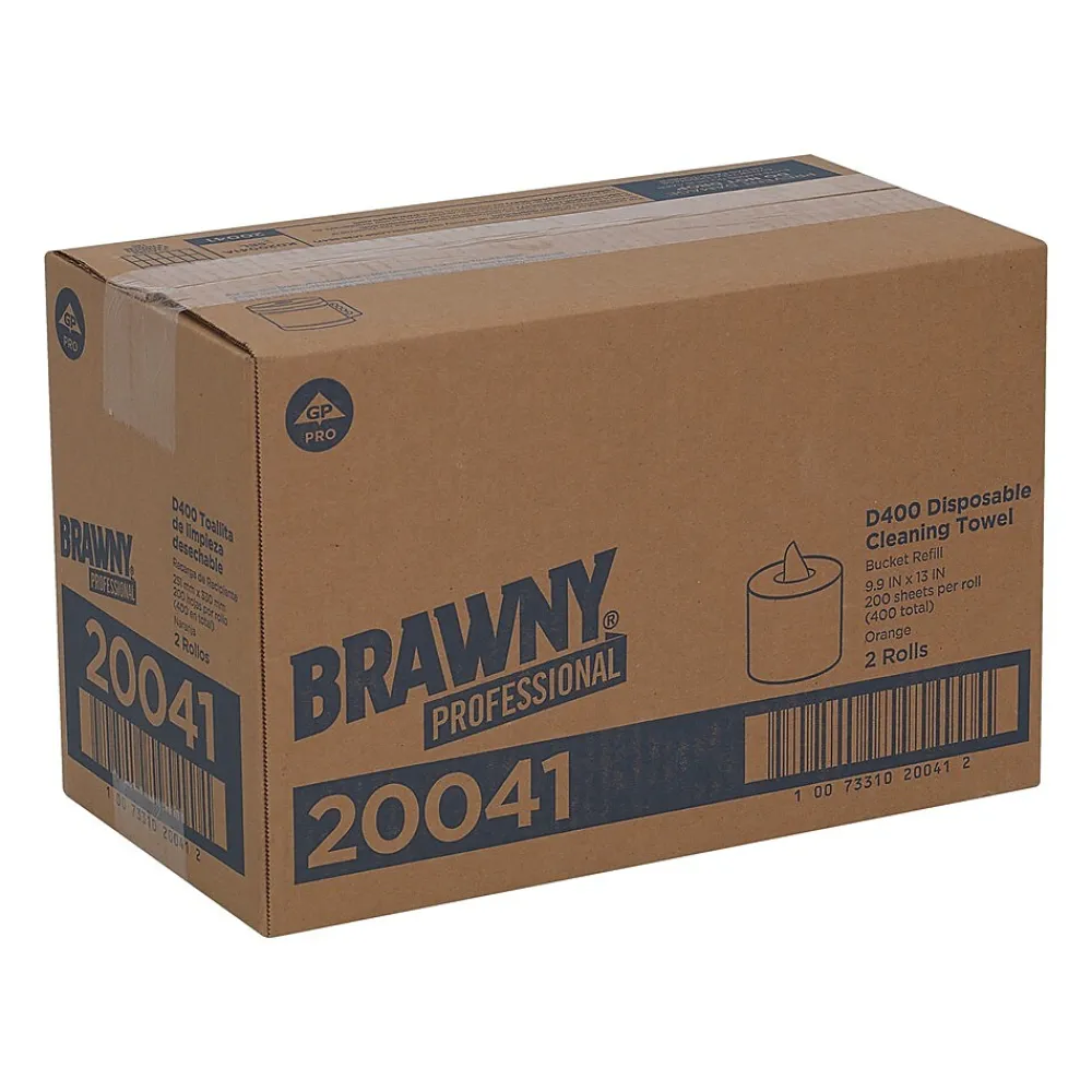 GP Brawny Professional disposable cleaning towels mop up all types of messes with a sturdy design that allows for fast moisture absorption. Ideal for absorbing water, grease and oil, these towels come in orange for a heavy-duty look. Each sheet features a large size for more cleaning range, reducing the need to use multiple sheets. Constructed of durable fibers, these towels offer bulk and strength to handle nearly any mess. With two rolls per case, you can refill more than one bucket.