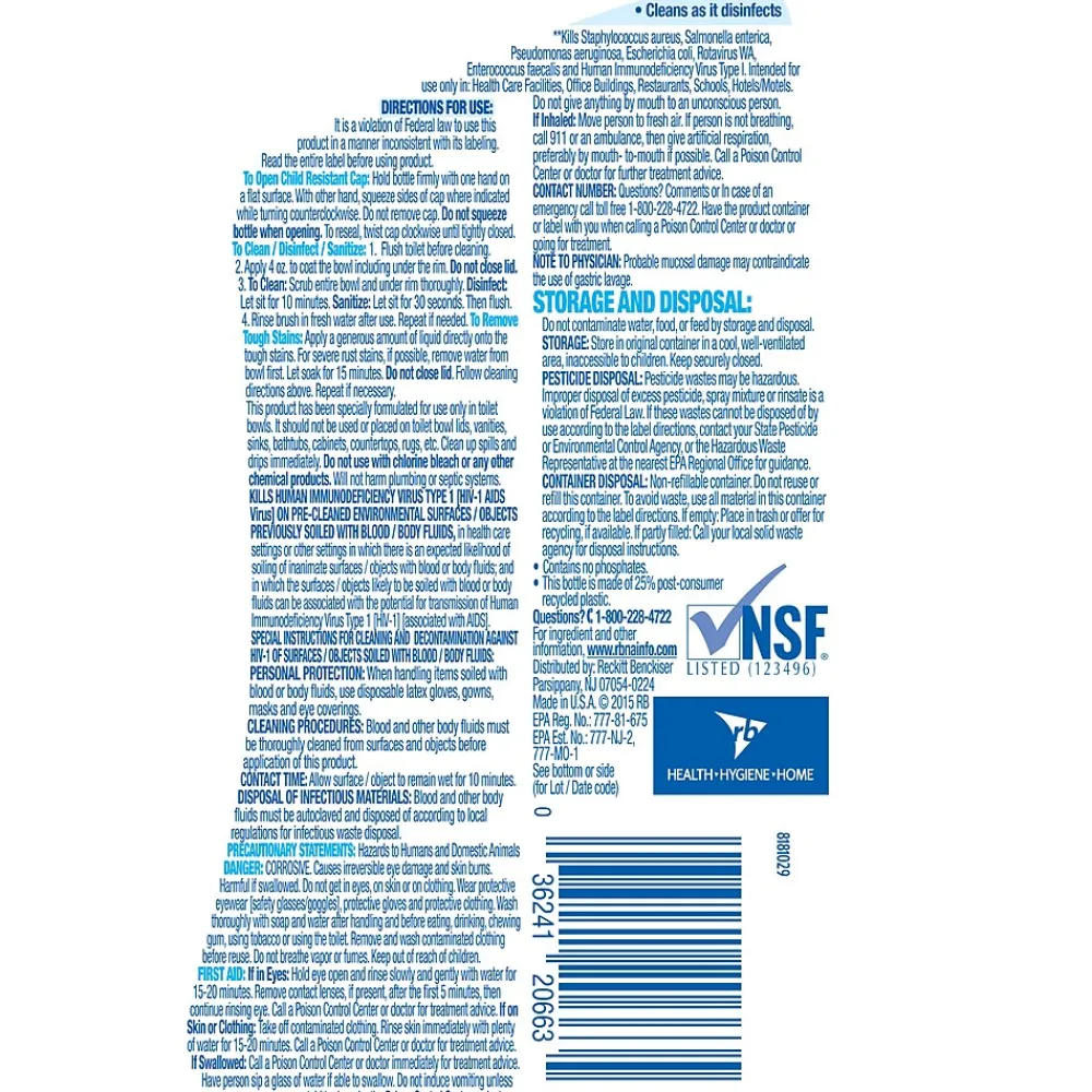 - Formulated for disinfection: Meets AOAC use-dilution efficacy test standards for hospital disinfectant toilet bowl cleaners.