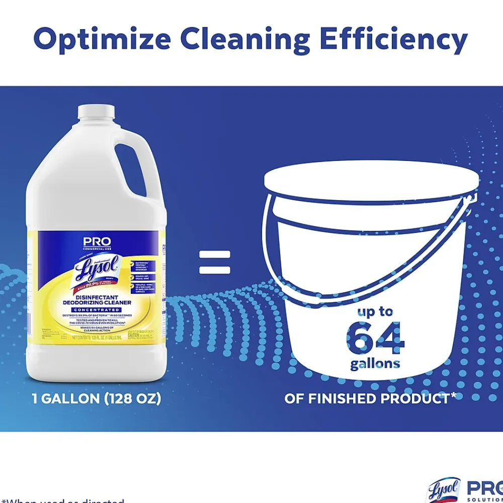 Give cleaning crews a versatile formula that cleans, disinfects, and deodorizes. This economical, concentrated solution makes up to 64 gallons of cleaning action that crews can use on a wide range of hard, non-porous surfaces. To disinfect, dilute 1 oz. of product with 5 oz. of water. When used as directed, this product is bactericidal, virucidal, and germicidal, destroying 99.9% of bacteria in 60 seconds. Remove dirt, grease, and grime all at once, and leave behind a familiar lemon scent.