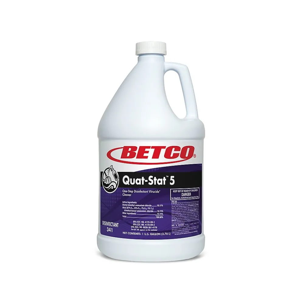 Betco Quat-Stat 5 provides hospital disinfection with a contact time of just 5 minutes. This registered one-step cleaner and disinfectant offers excellent cleaning performance on a wide variety of surfaces. It cleans, disinfects, and deodorizes.