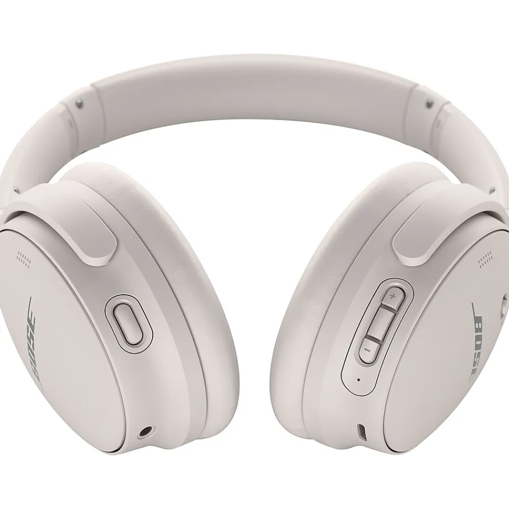 The original noise-canceling headphones are back, with world-class quiet, shockingly light materials, and proprietary technology for deep, clear sound. Bose QuietComfort 45 headphones. It’s an icon reborn. Proprietary Acoustic Noise Canceling technology produces the true quiet you need to hear every detail of your music in high fidelity. Or choose Aware Mode to hear your music and your environment at the same time. TriPort acoustic architecture and Bose innovations like volume-optimized Active EQ add depth and clarity to your music, while maintaining balance at any volume. And materials such as synthetic leather and glass-filled nylon were meticulously selected for comfort and durability. The headphones give you 24 hours of listening time and charge via the included USB Type-C cable. Bluetooth 5.1 maintains a strong connection to your device, and the Bose Music app guides you through setup, lets you personalize settings, and keeps your headphones’ software up-to-date.