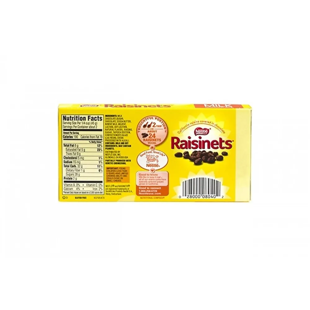 Looking to satisfy your chocolate cravings without all the guilt? With 30% less fat than the leading chocolate brands, reach for Raisinets. Made with the best ingredients, each California Raisin is dipped in Nestle Classic Milk Chocolate for a great taste you can rely on. With 15 boxes in this bulk candy pack, there is plenty to stock the pantry for family movie night. Satisfy your sweet tooth with a healthy alternative with Raisinets Theater Boxes.