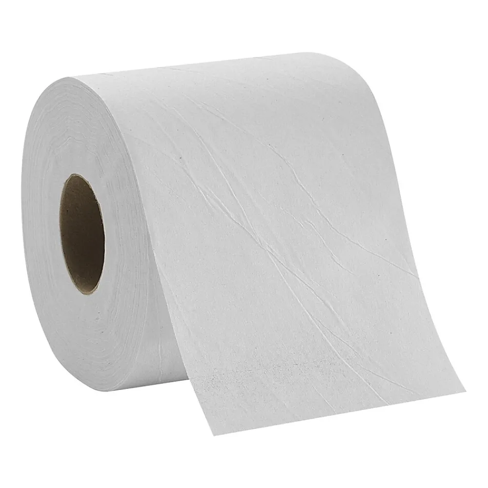 Pacific Blue Basic white 1-ply bathroom tissue works perfectly for institutions that need an affordable option while remaining sensitive to environmental concerns. Each tissue roll is made of EPA-compliant recycled fiber content and the paper is biodegradable so it won’t clog your facilities’ wastewater systems. A standard core size fits ordinary paper dispensers for convenience and ease of use. Individual wrapping makes it easy to handle each roll during replacement and to stock multiple bathrooms from a single pack.
