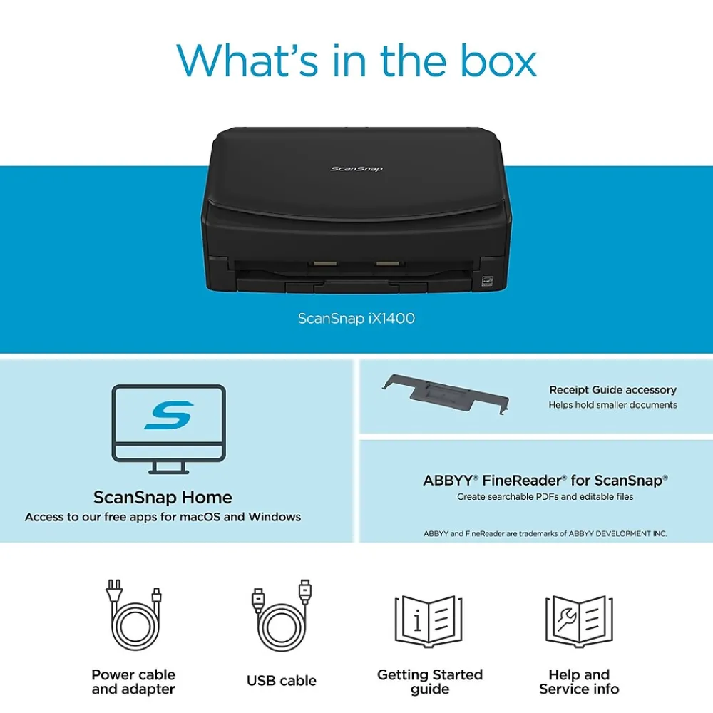 The ScanSnap iX1400 is a testament to simplicity proving technology doesn’t have to be complicated. With a one-button touch to scan, digitize and organize documents, the iX1400 is perfect for every day scanning needs.