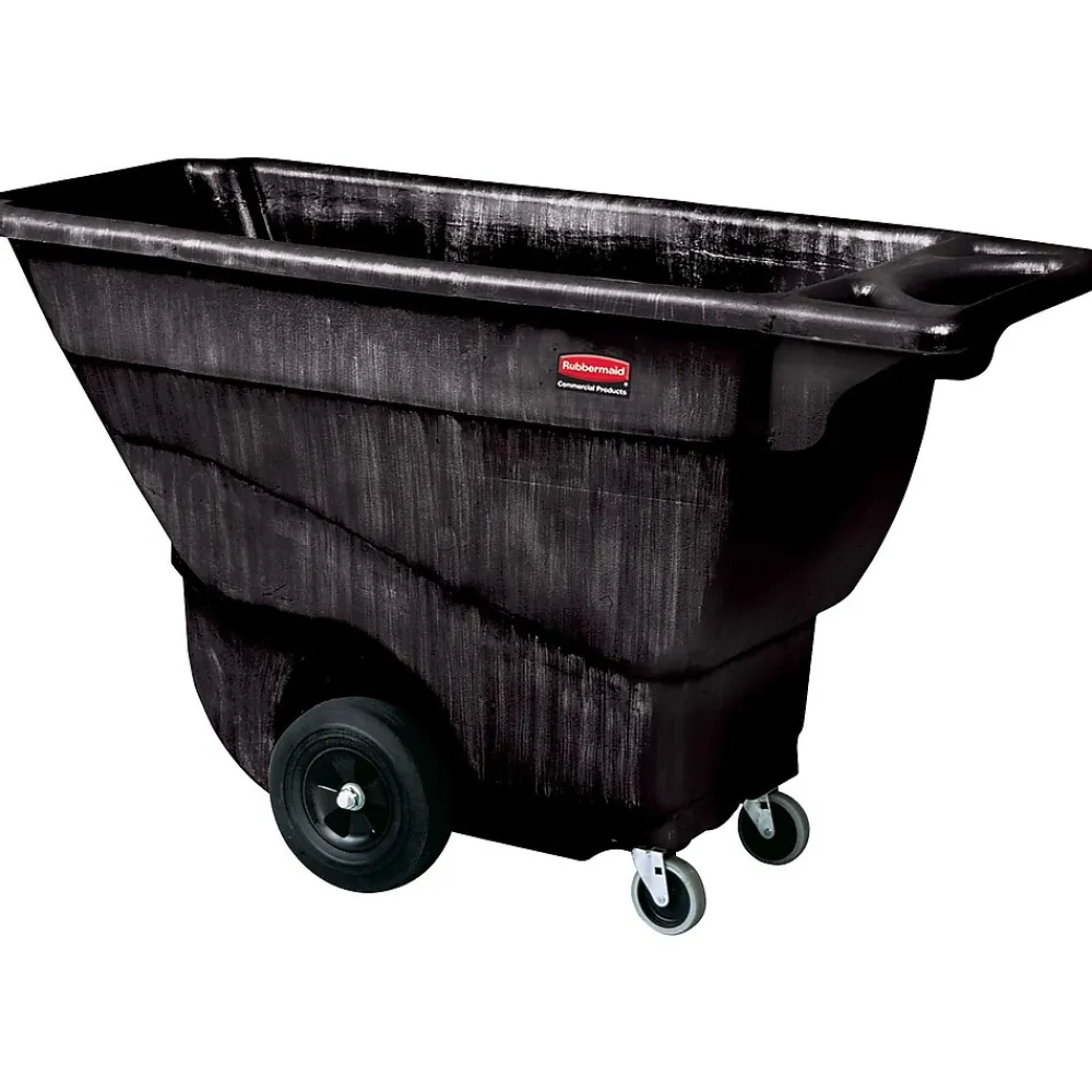 Make garbage disposal simple by using this commercial structural foam tilt truck. Four durable rubber wheels deliver easy maneuvering through narrow corridors or pallet stacks maneuver, and this truck conveniently fits through most doorways and elevators, helping you get waste from one place to another. Featuring an optional hinged lid, this tilt truck keeps contents secure and prevents unwanted smells from seeping out, while the non-marking rubber casters help keep floors safe from scratches and marks. This Rubbermaid black commercial structural foam tilt truck has a capacity of up to 450 pounds, helping you take large amounts of trash to the dumpster at one time.