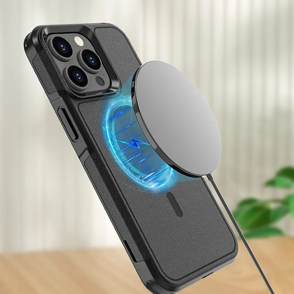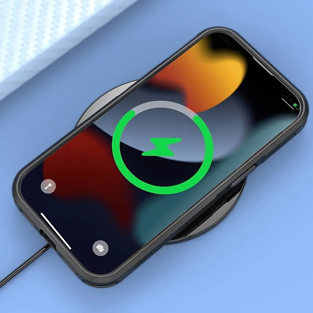 The MagSafe compatible magnetic lock has powerful built-in magnets with 1,500g of holding force to enable faster, easier place-and-go wireless charging and a secure lock on any HaloLock or MagSafe accessory. The form-fitting, shock-absorbing design grants protection while minimizing bulkiness, and the anti-slip grip helps prevent drops.