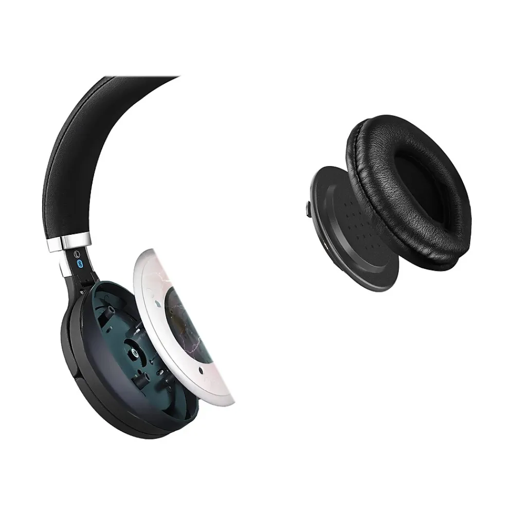 - Black on-ear design with high-comfort ear pads