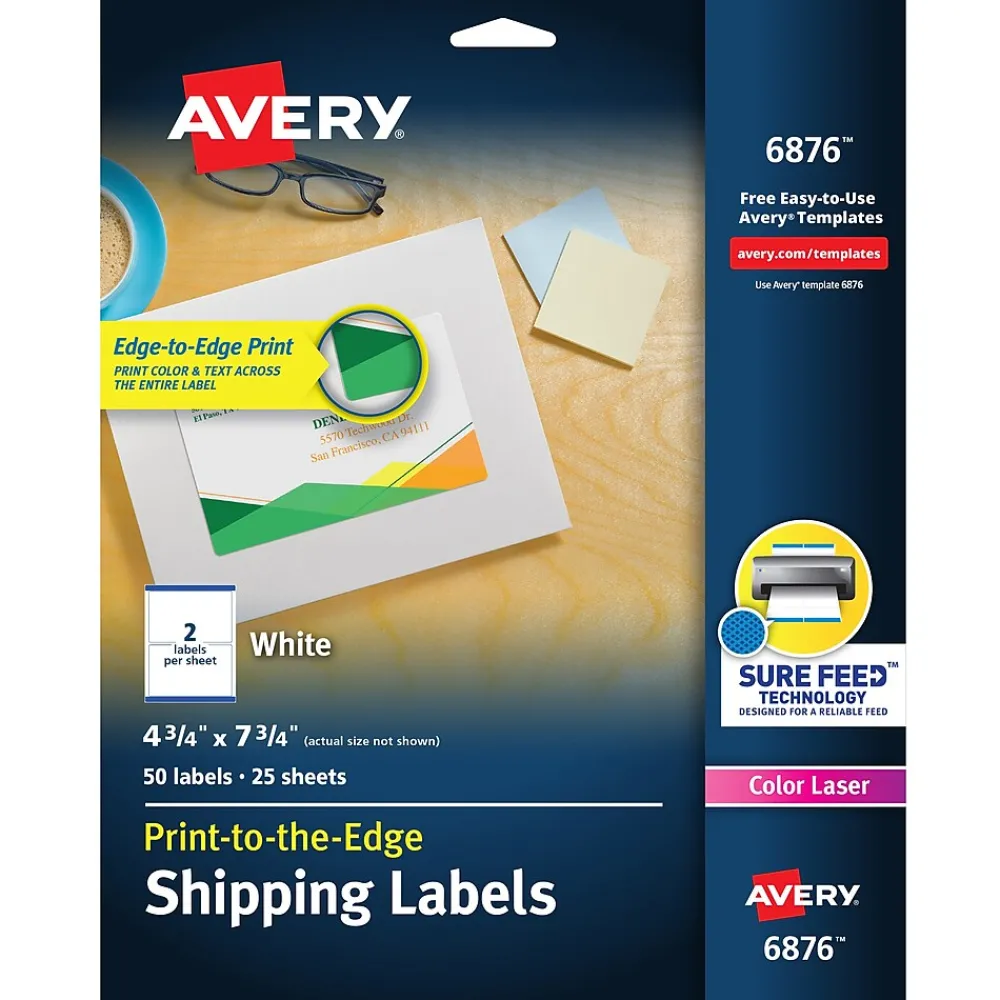 Custom print on Avery 6876 matte white laser shipping labels to create personalized messages or professional shipping labels. Matte white coating makes logo colors look vivid and bright, while words pop for high visibility. These Avery 6876 matte white laser shipping labels are compatible with most popular laser printers and copiers, and the labels as jam and smudge free.