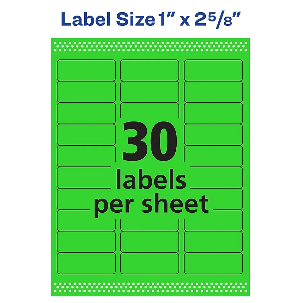 Sale Avery Sure Feed Laser Address Labels, 1″ x 2 5/8″, Neon Green, 750 Labels/Pack (5971) Bright Green