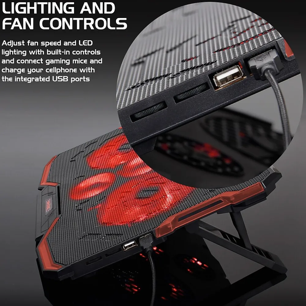 - DUAL USB POWER PORTS: Connect your laptop using the first port to power the cooling pad and use the extra port to connect your gaming mouse, charge your phone, transfer data, and much more