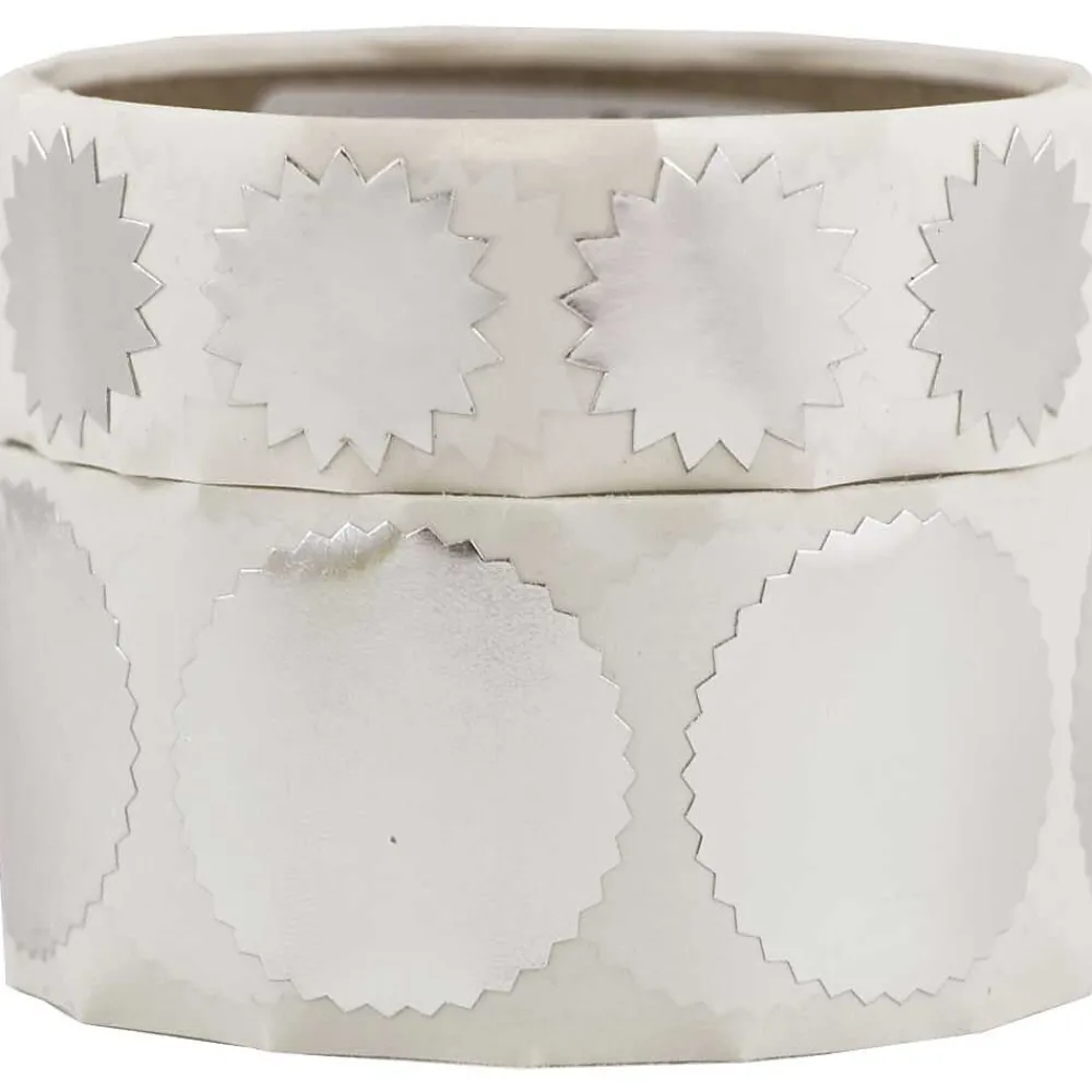 No matter what the message, the JAM PaperĀ® brand carries everything you need to deliver it smoothly and securely. If you’re sending out a wedding invitation, confidential document, or special announcement, closing it with one of these serrated metallic seals will let everyone know that this is no ordinary greeting. The silver color adds a splash of prestige and elegance to your envelope, telling your recipient there’s something important inside. The seals also work for art projects or rewarding a hardworking student. This combo pack contains a roll of 100 small 3/4″ labels, and a roll of 100 large 1 1/2″ labels. Make the packaging as extraordinary as the message itself with these professional seals!