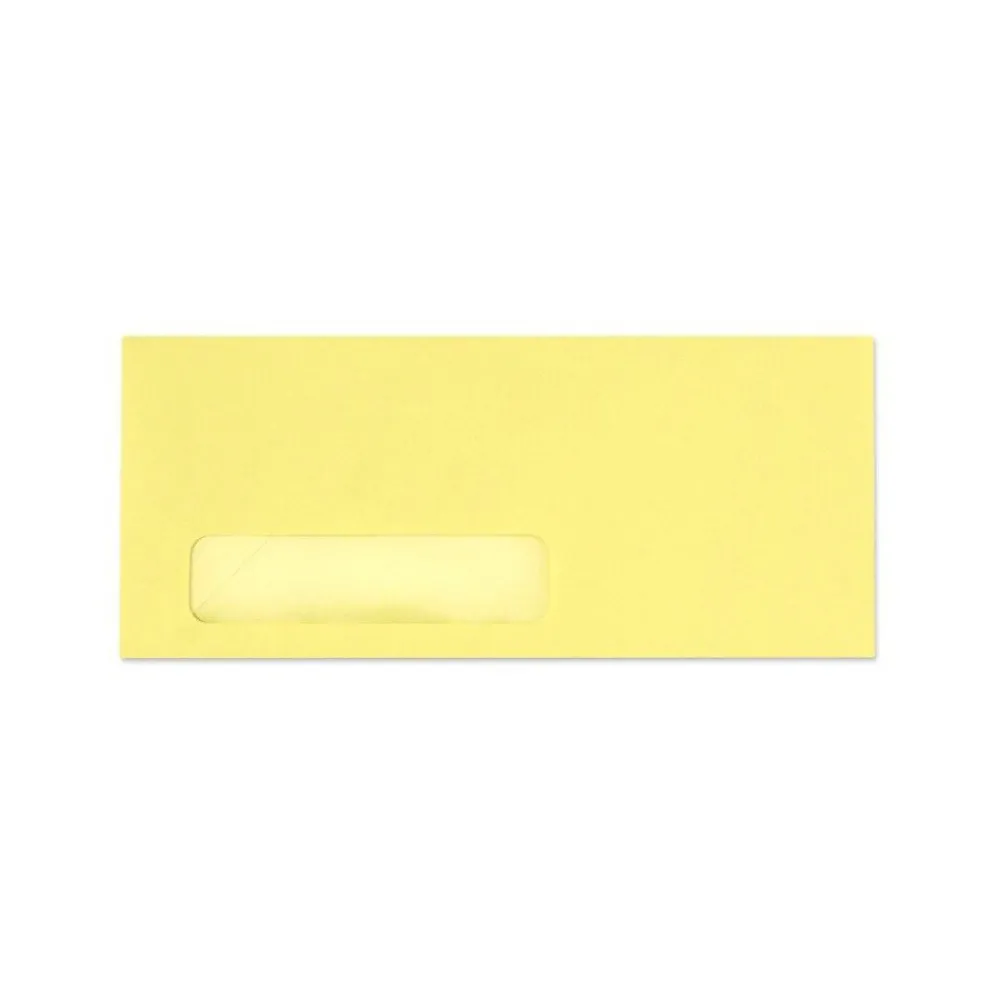 LUX® Size 10 Window envelope in pastel canary color features moistenable glue for safe sealing. Envelope featuring window saves duration as well as the expense of addressing separately and has 60 lbs paper weight, is sold as 50 per pack.