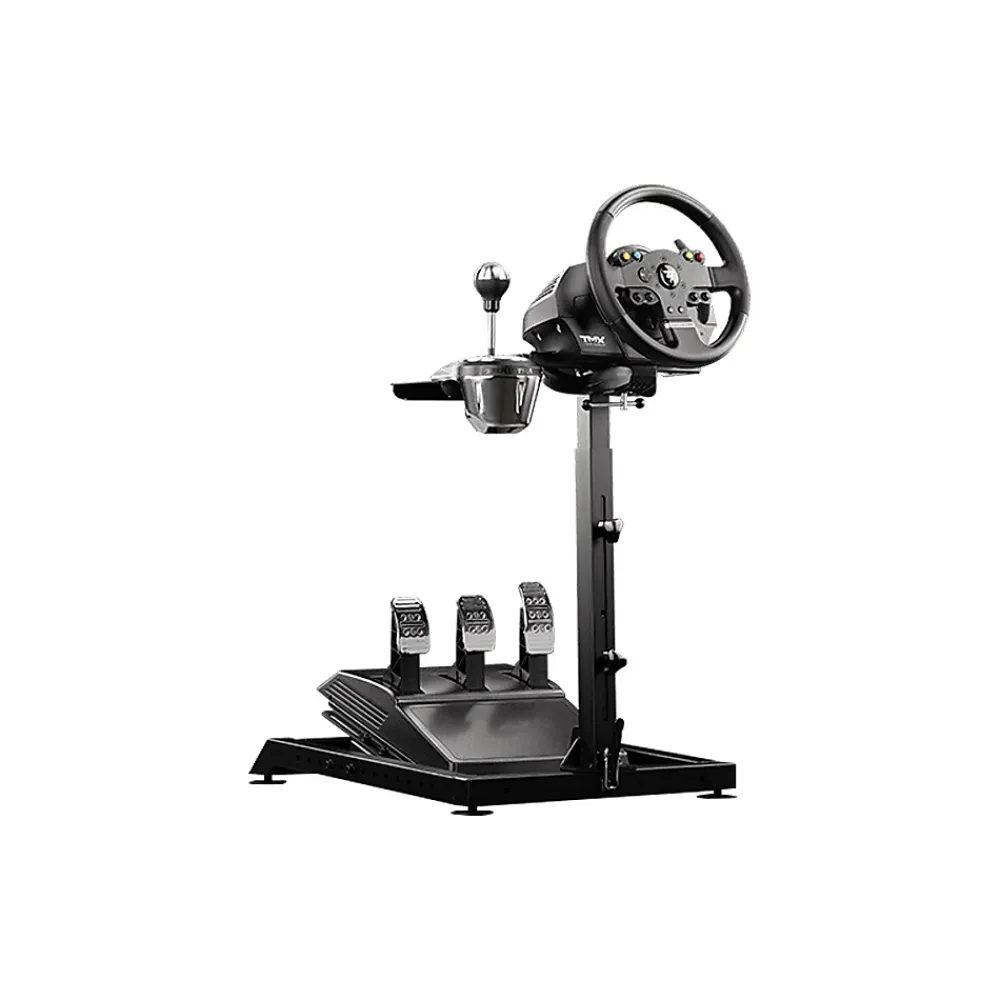 The Next Level Racing wheel stand lite is a solid and highly adjustable stand for all major wheels, pedals and gear shifters. The wheel stand lite allows the user to transition from a desk setup to a dedicated stationary and portable station. A full range of adjustability, makes it the perfect product for any user that is looking to start their sim racing journey and it allows the user to continue building to a full cockpit setup.