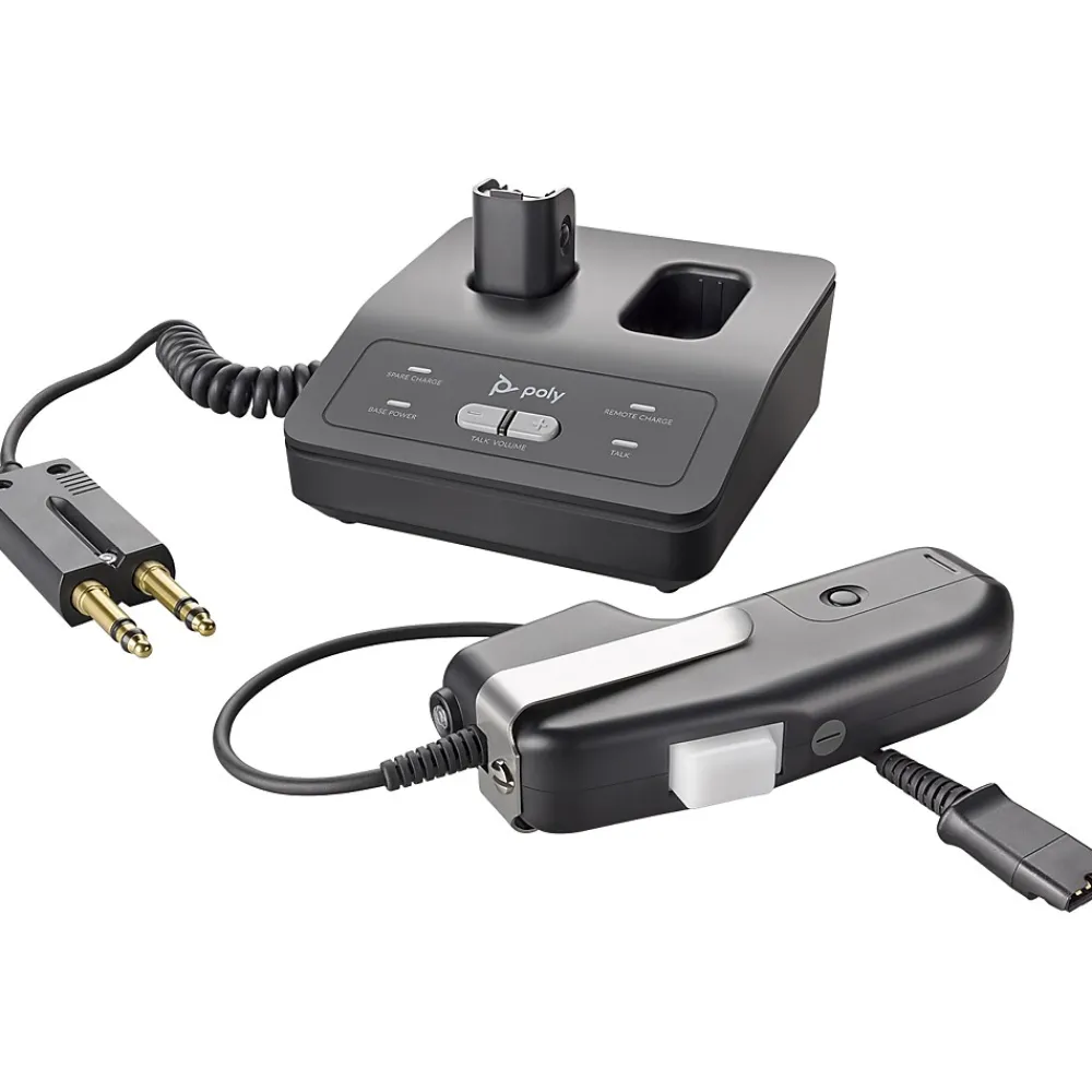The Poly CA22CD-DC cordless PTT (Push-To-Talk) headset adapter provides wireless communications and PTT functionality for public safety dispatch, air traffic control, radio dispatch operations, and training simulation. This ultra-secure DECT wireless adapter is the perfect choice anywhere sensitive communications happen. Relax knowing conversations are protected—designed to meet the highest-level DECT security Step C requirements.